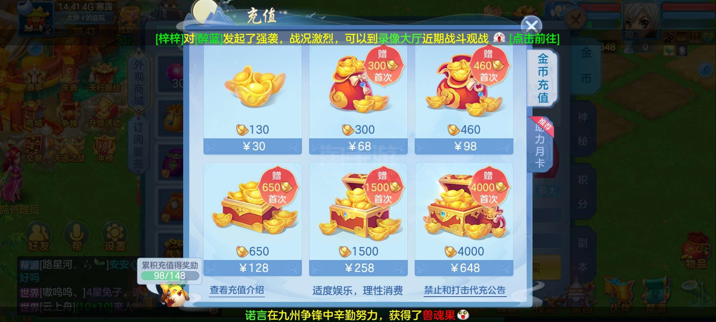 幻唐志:逍遥外传(神武4)【安卓官方】国庆大区甲1副帮双倍充值都在,5技能老鼠,大波两卡速一自闭,孩子也有伙伴满段