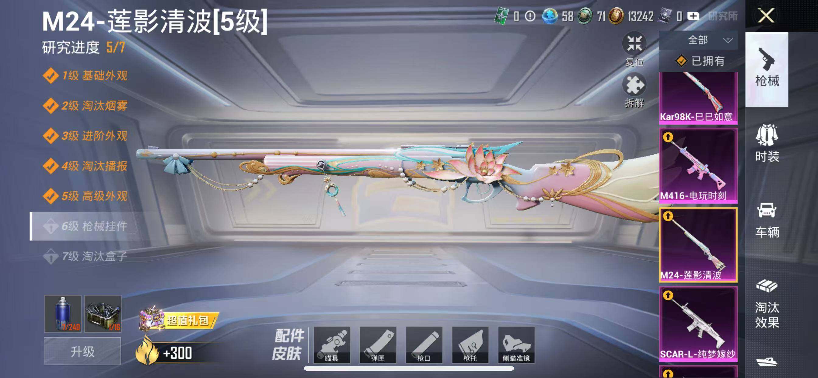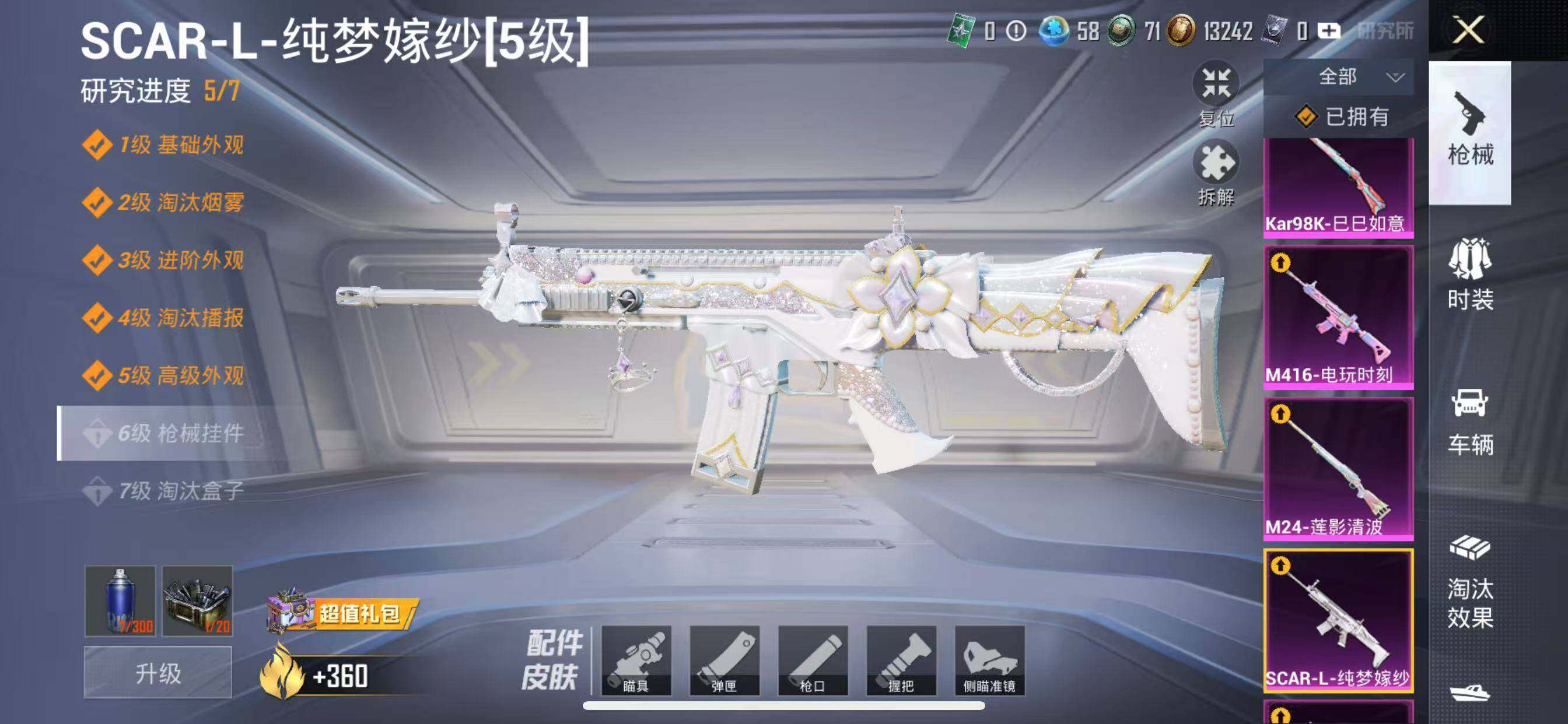 【粉色枪皮等级】:SCAR-L-纯梦嫁纱(五级),M416-电玩时刻(五级),Vector-环太
