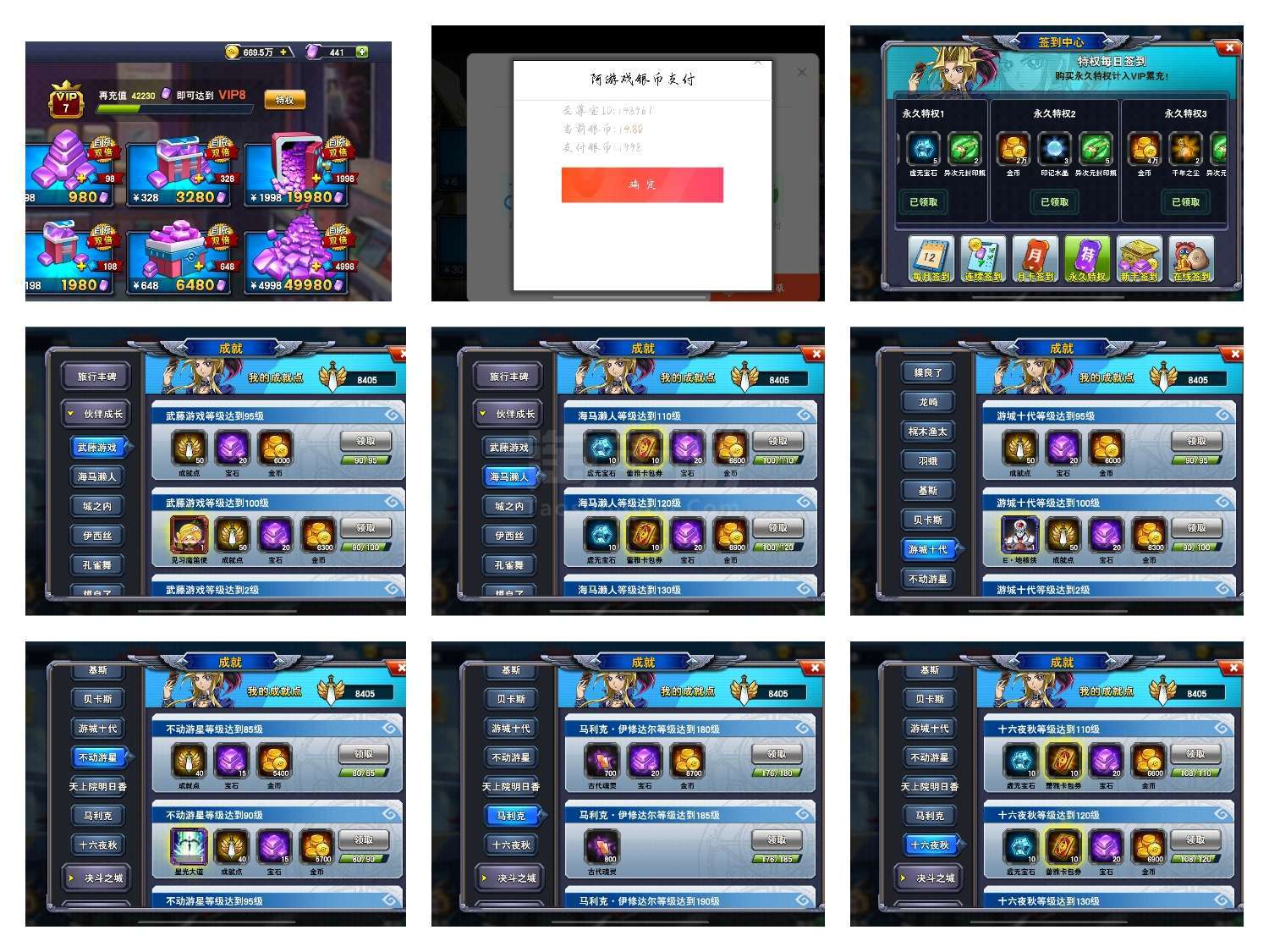 金杯14个,成就8405,100级白龙,金蛋前拖白神珊瑚海晶黑神冥神青眼银龙3红莲大哥,邪心弓神大炮