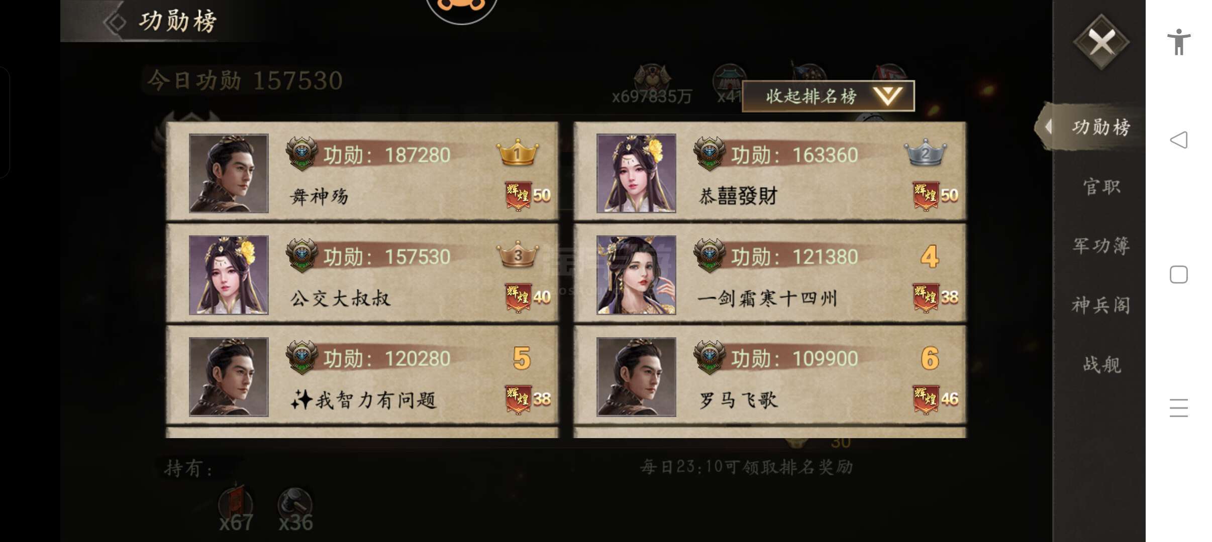 攻城掠地【安卓当乐】42万血号、帽子大帝、武刚车、三星小乔、斩蛇、6/7/8车、其他看图……
