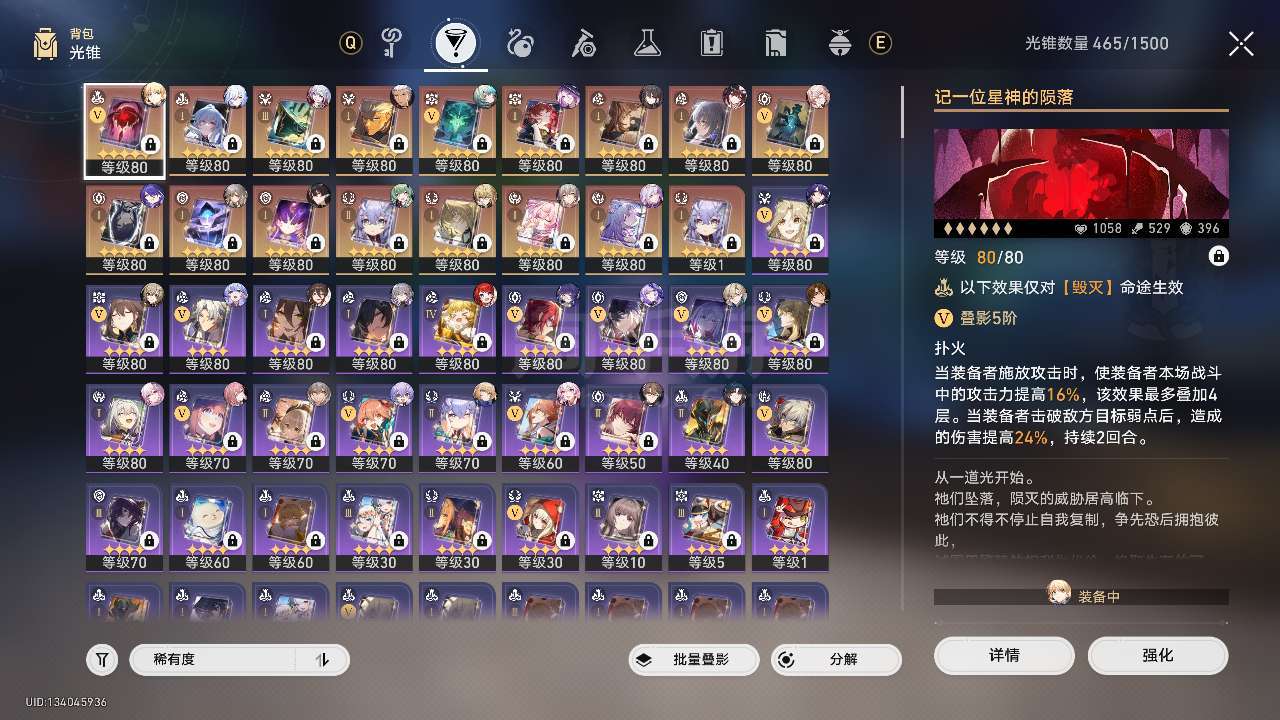 满命黄泉二命遐蝶还剩四个光锥碎忆,可以换一个up光锥还有69抽武器池大保底地图还有很多资源