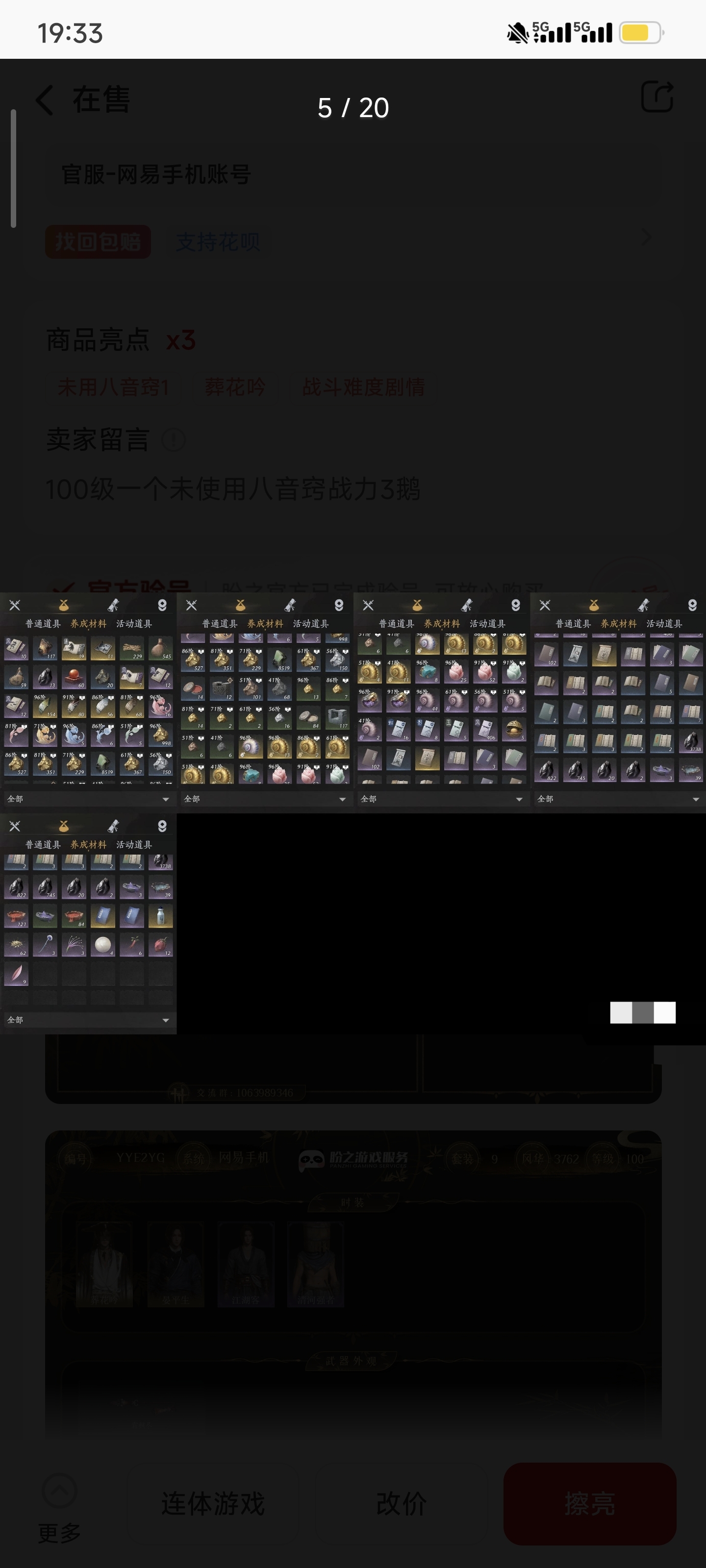 通过App,与卖家商议价格及保险,并向卖家索要账号最新截图,确认后下单购买。