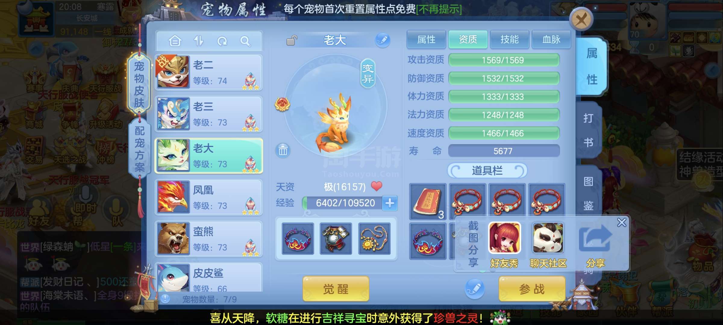 幻唐志:逍遥外传(神武4)【安卓官方】天行健刚70 跟等级 有成品老鼠 五技能熊 六技能猫 仓库里还有一只绿心六技能猫 和红心四技能碧波