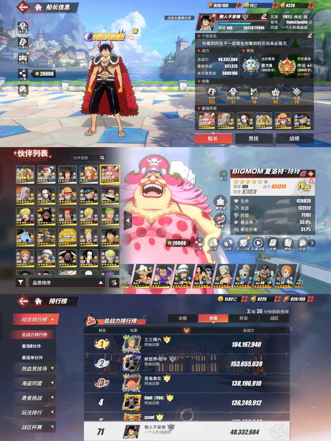 航海王热血航线【安卓OPPO】4800万74传奇11强者 满典藏 98友情技鬼路 8000金果6钥匙183高招1000彩果 全强者