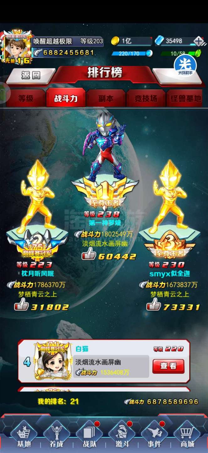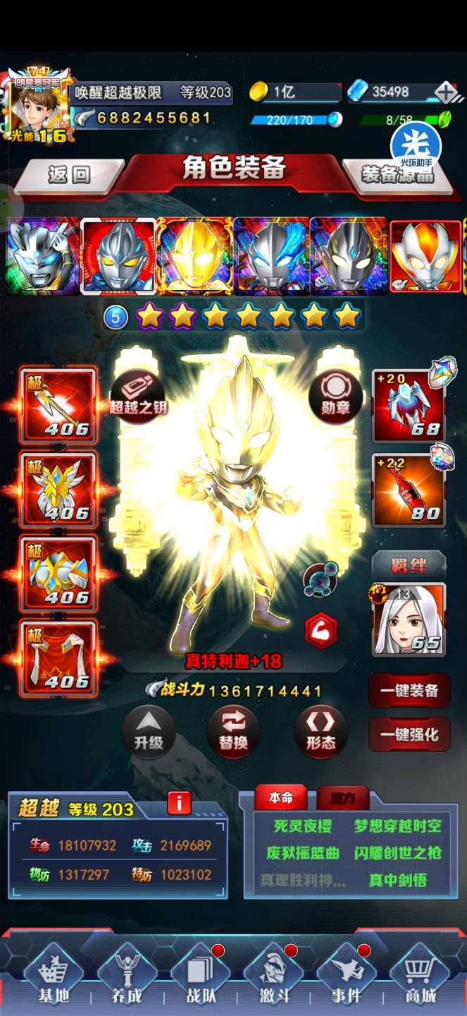 奥特曼系列OL【安卓官方】唤醒 本命红变大布 真特 双金破红闪迪 突破迪莫