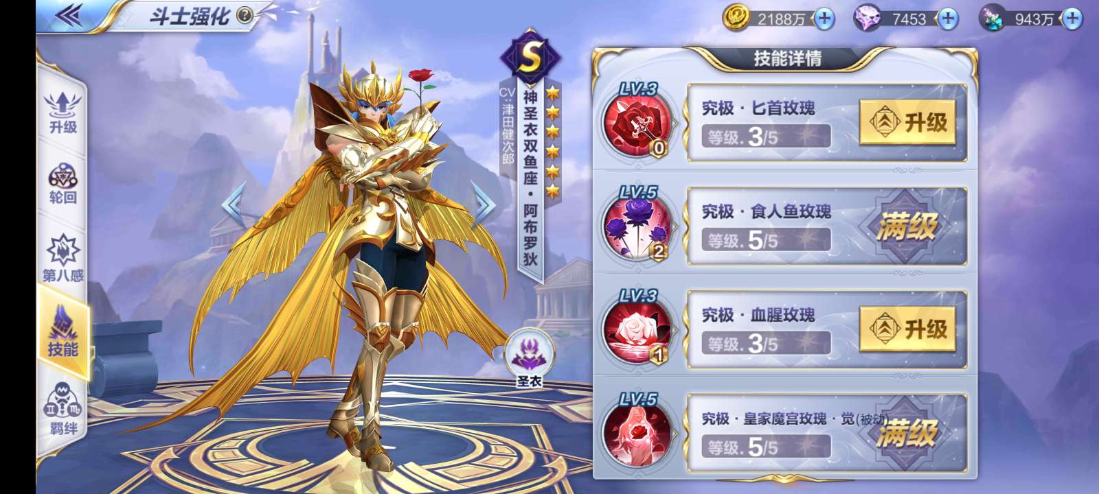 账号ss角色多,神双鱼座觉醒,技能书不少很多都加的差不多了