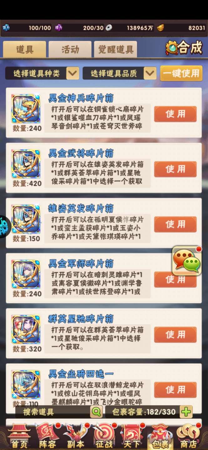 V3,玄尘,千古,纵横,雄姿群英,星驰箱子,背包里的碎片都没有整合,美人还没有合成,双丹一千多,