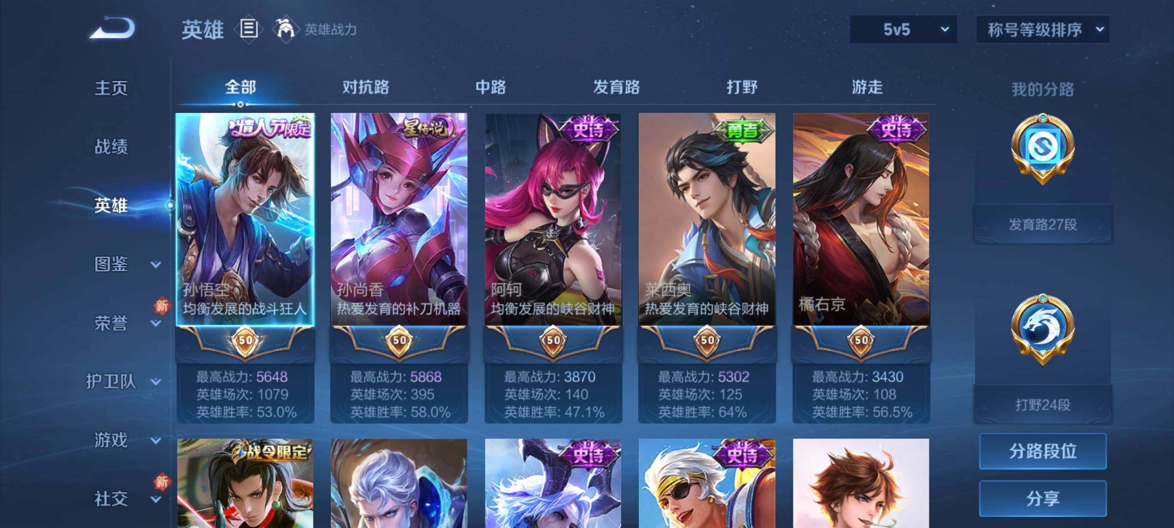 安卓Q-V7-至尊星耀I段位-127英雄-242皮肤-1典藏-0珍品无双-0无