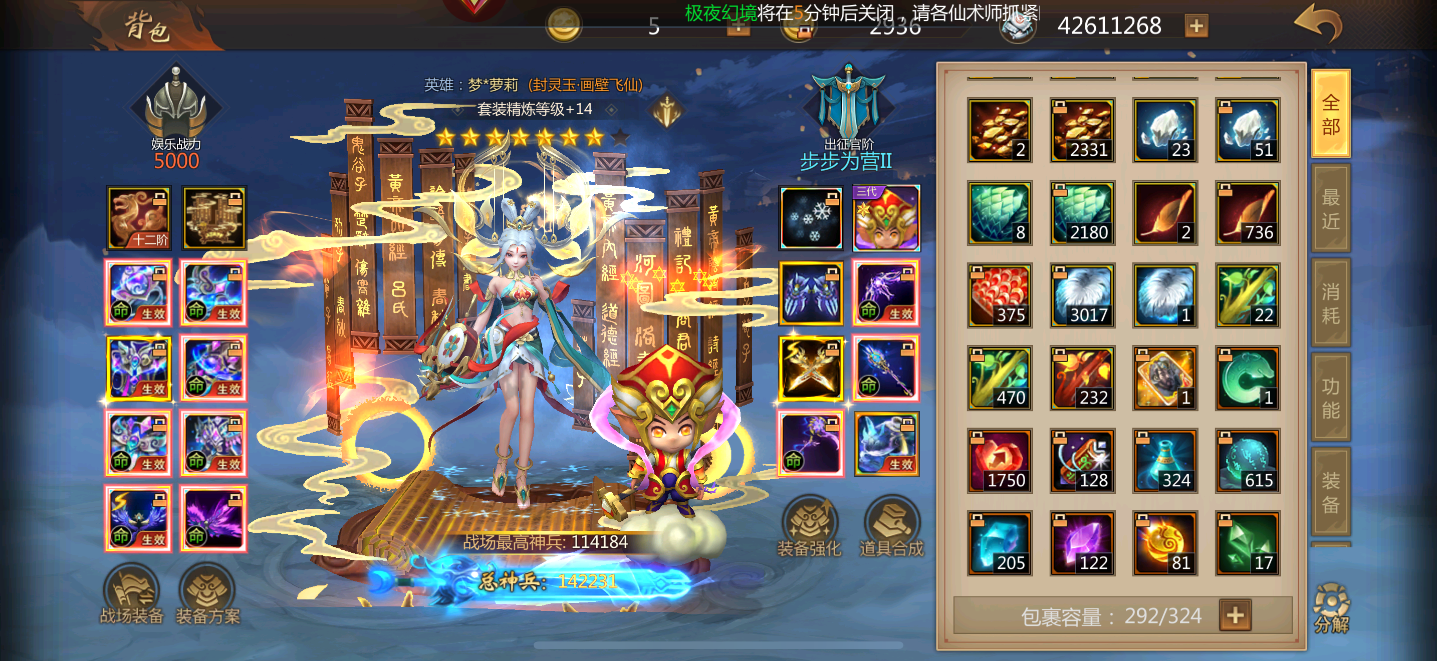 装备多,材料多,花点时间都能合