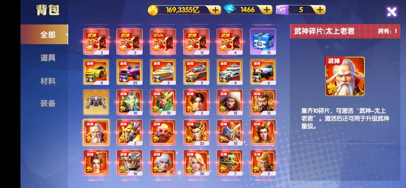 全武神,10套羁绊,3万炮,5257的加成,带反卷翅膀,配置高,新Q安全放心,买到就是赚到!