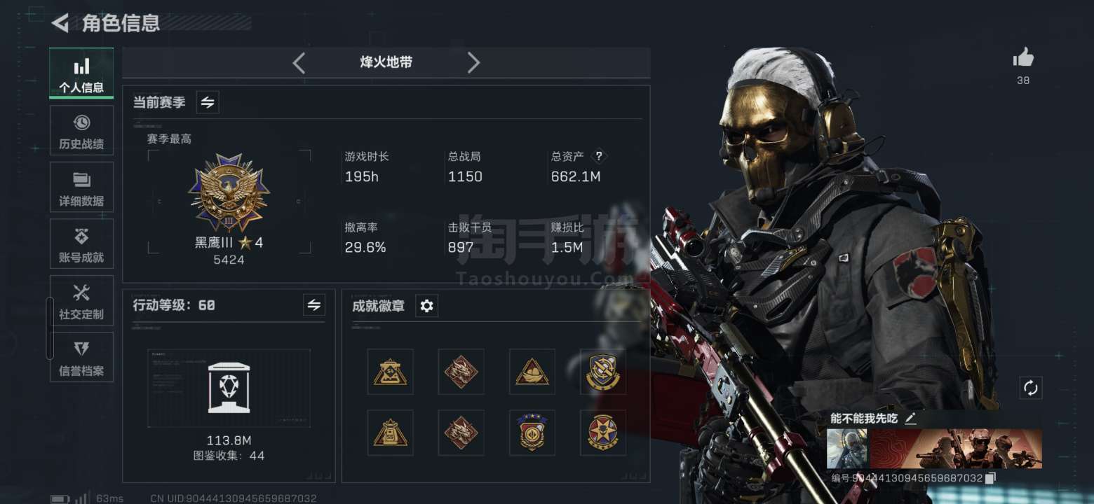 出三角洲账号红狼饰金玫瑰 威龙壮志凌云蜂医手册皮肤刀皮黑鹰 资产662现金252