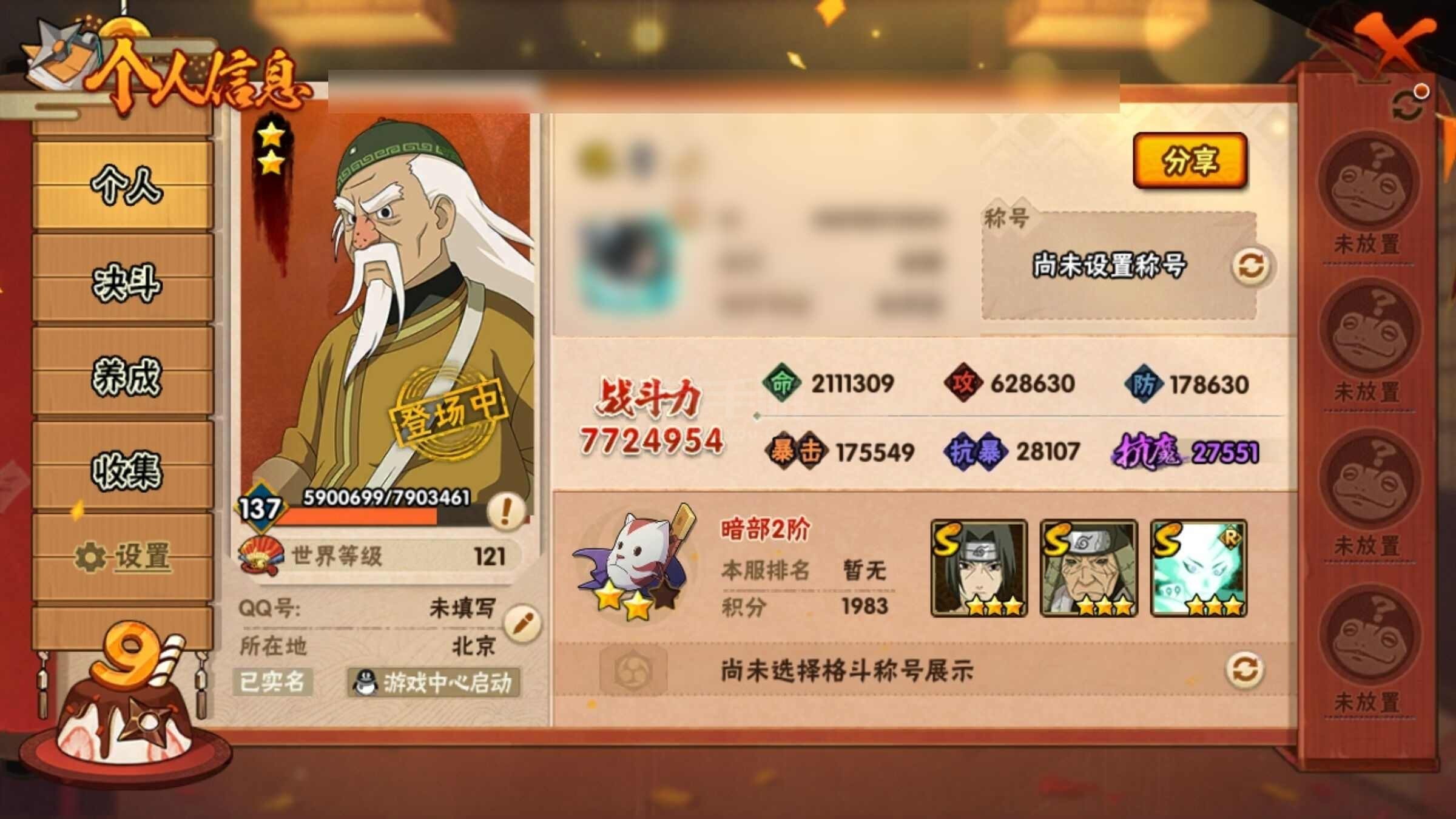 火影忍者【安卓QQ】多s超多a忍有数个点卷a忍法贴198版本已买。还有3万金币以及90多张高招卷月卡还有10多天