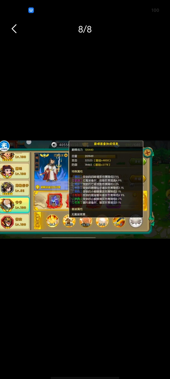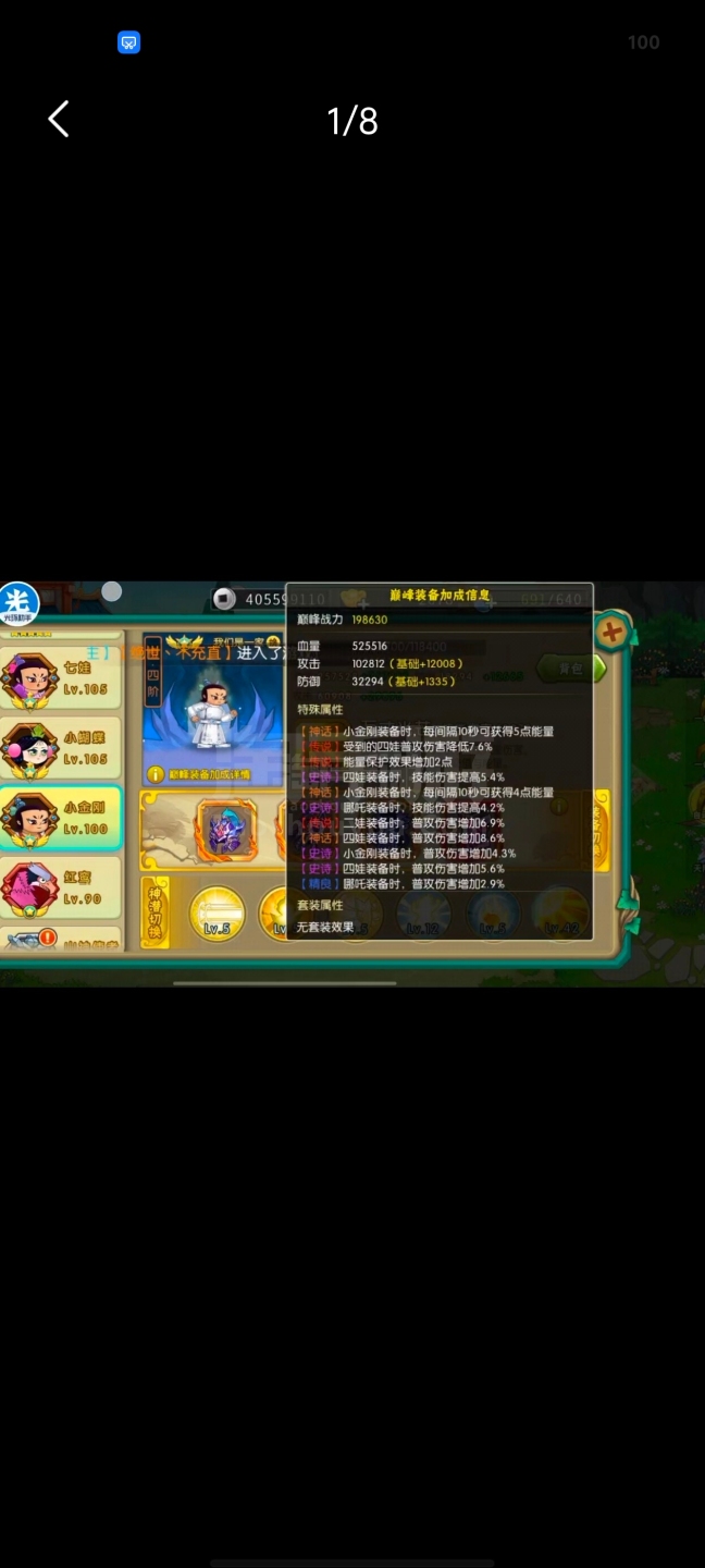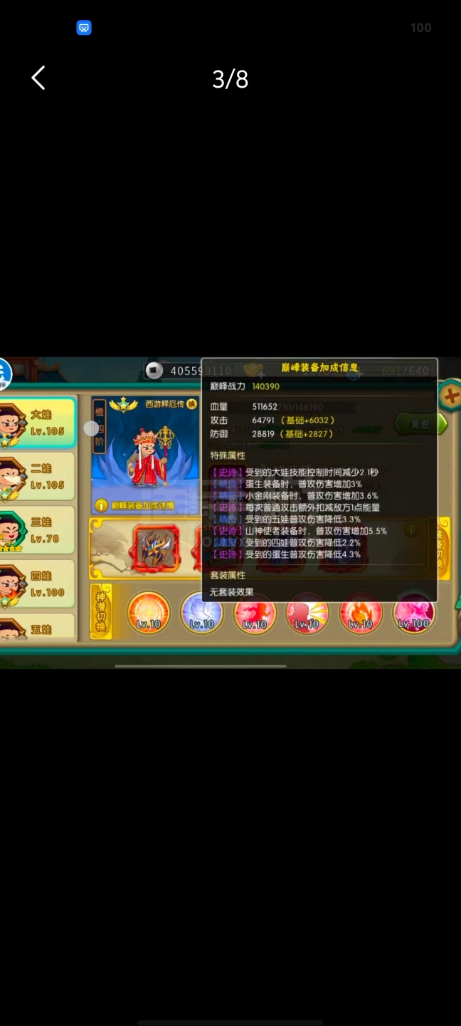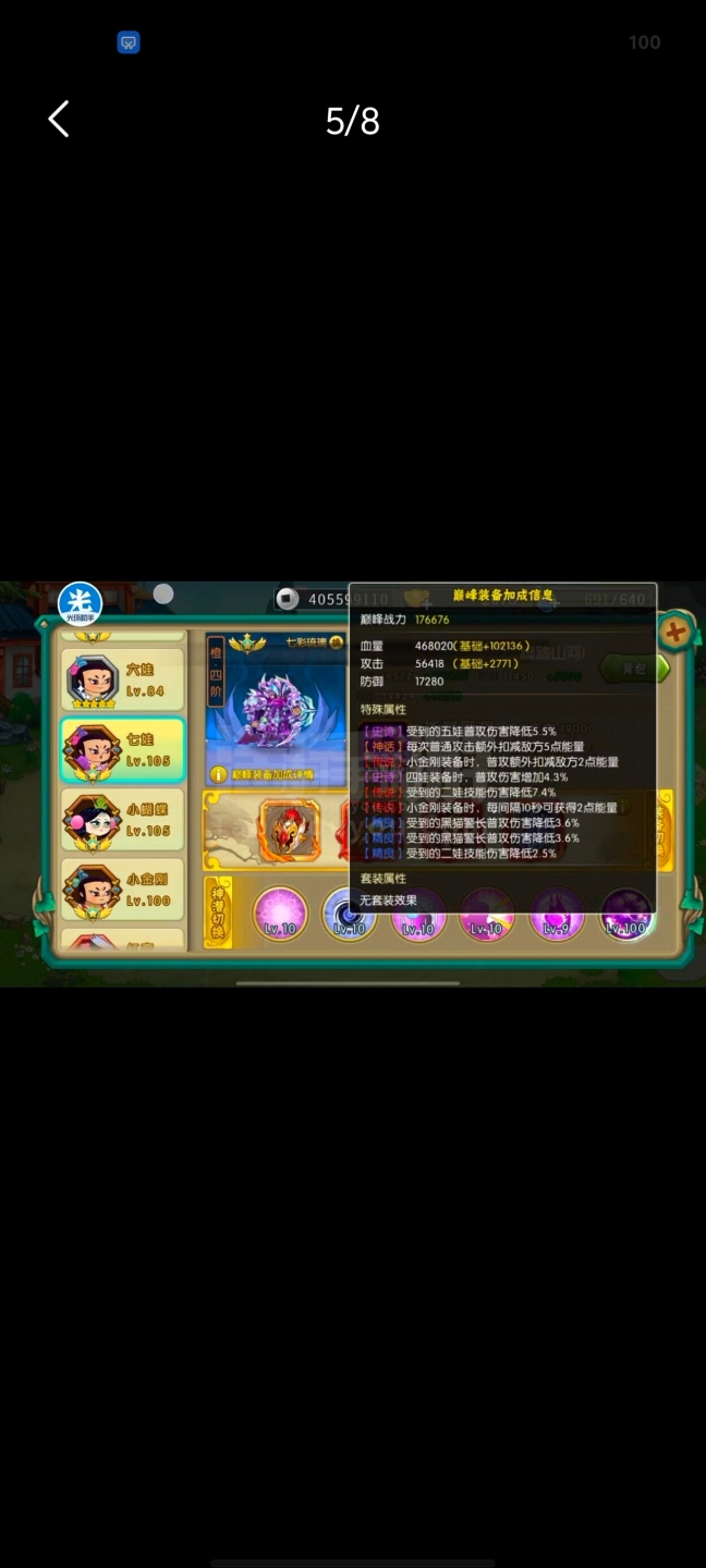 葫芦娃【安卓九游】极品号属性高低价卖,特效皮肤特别多,练习赛970强左右,可以小刀!