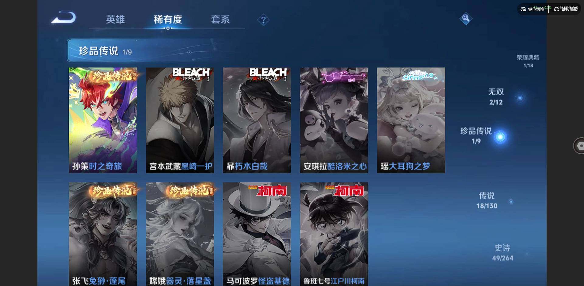 【传说皮肤】:妲己愿照众生和,澜愿照九州拓,虞姬愿照岁时盈,墨子黄金天蝎座,典韦战鼓燎原,孙尚香乘龙问璇玑,孙策乘龙淬吴钩,赵云乘