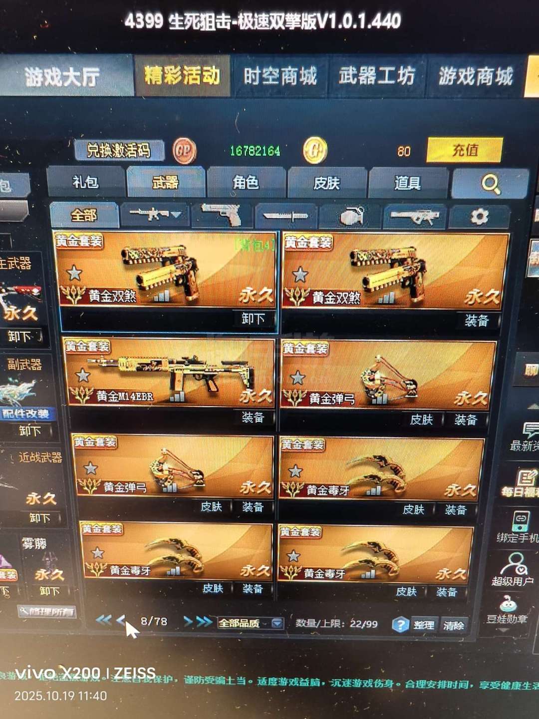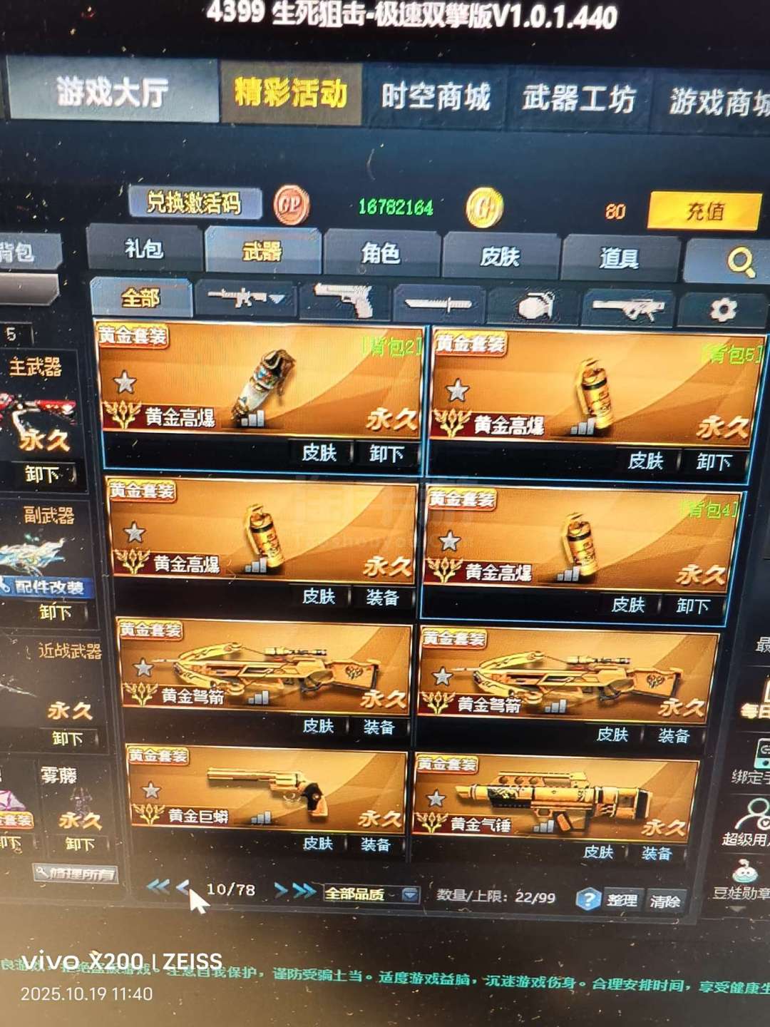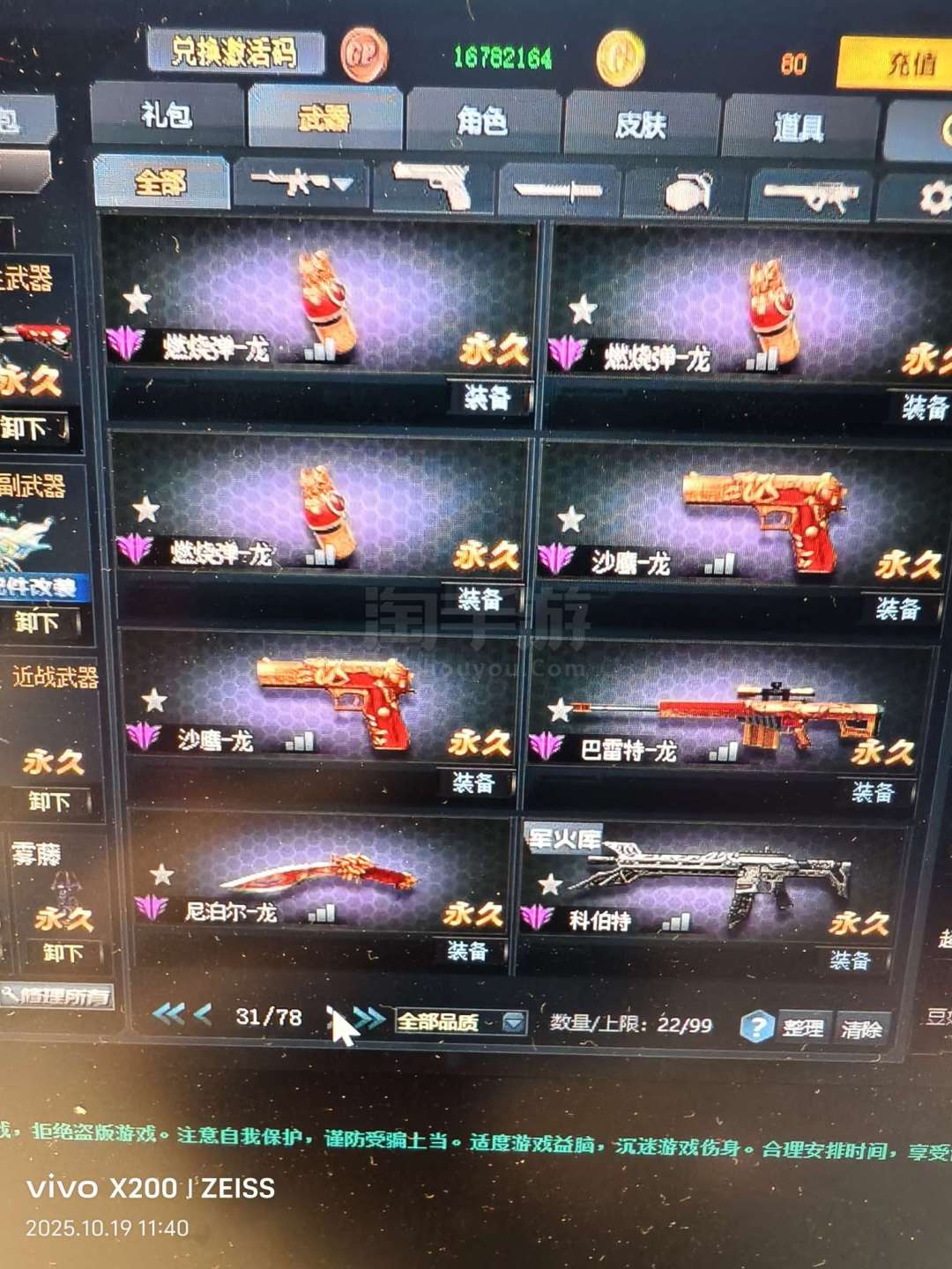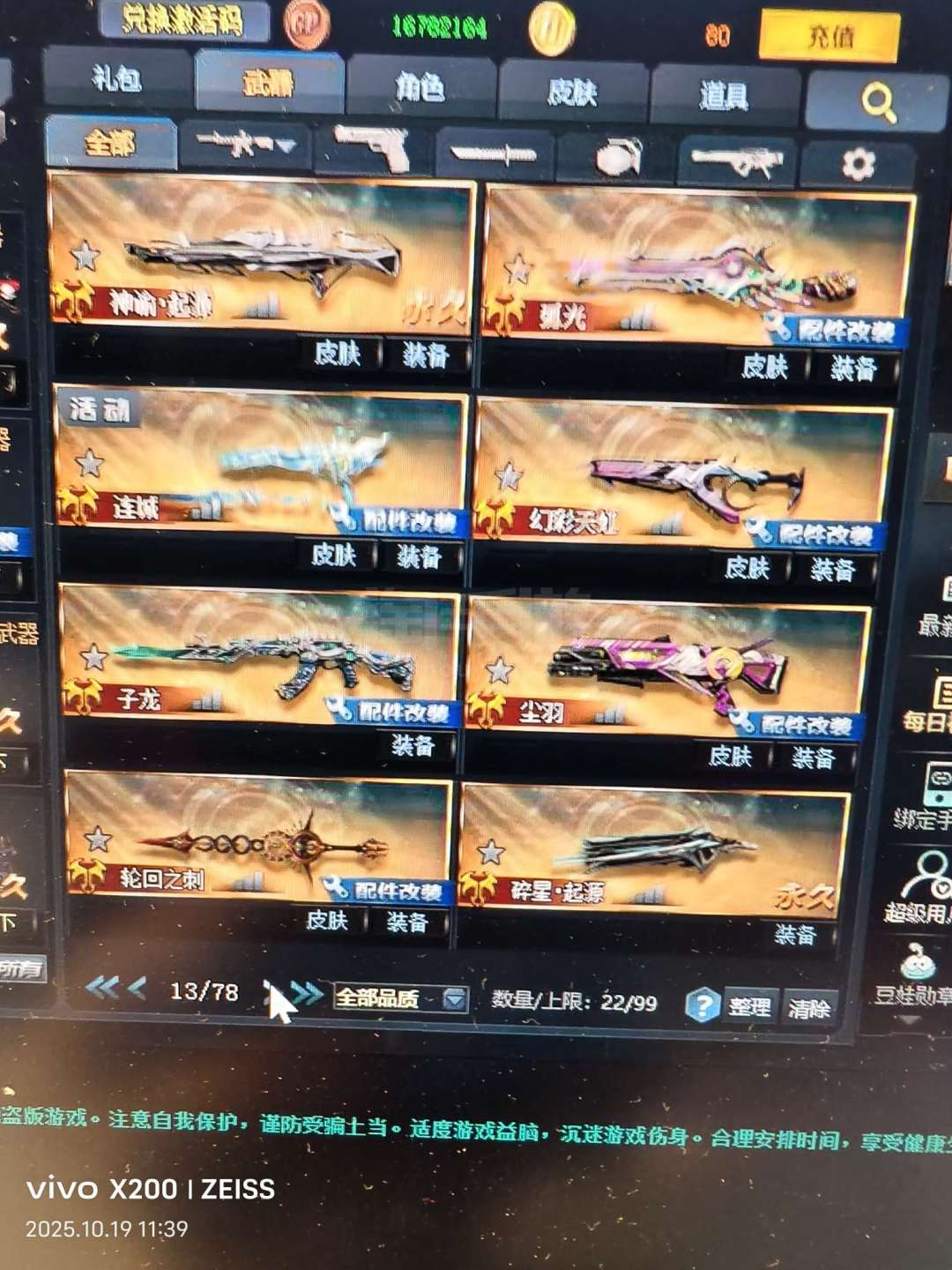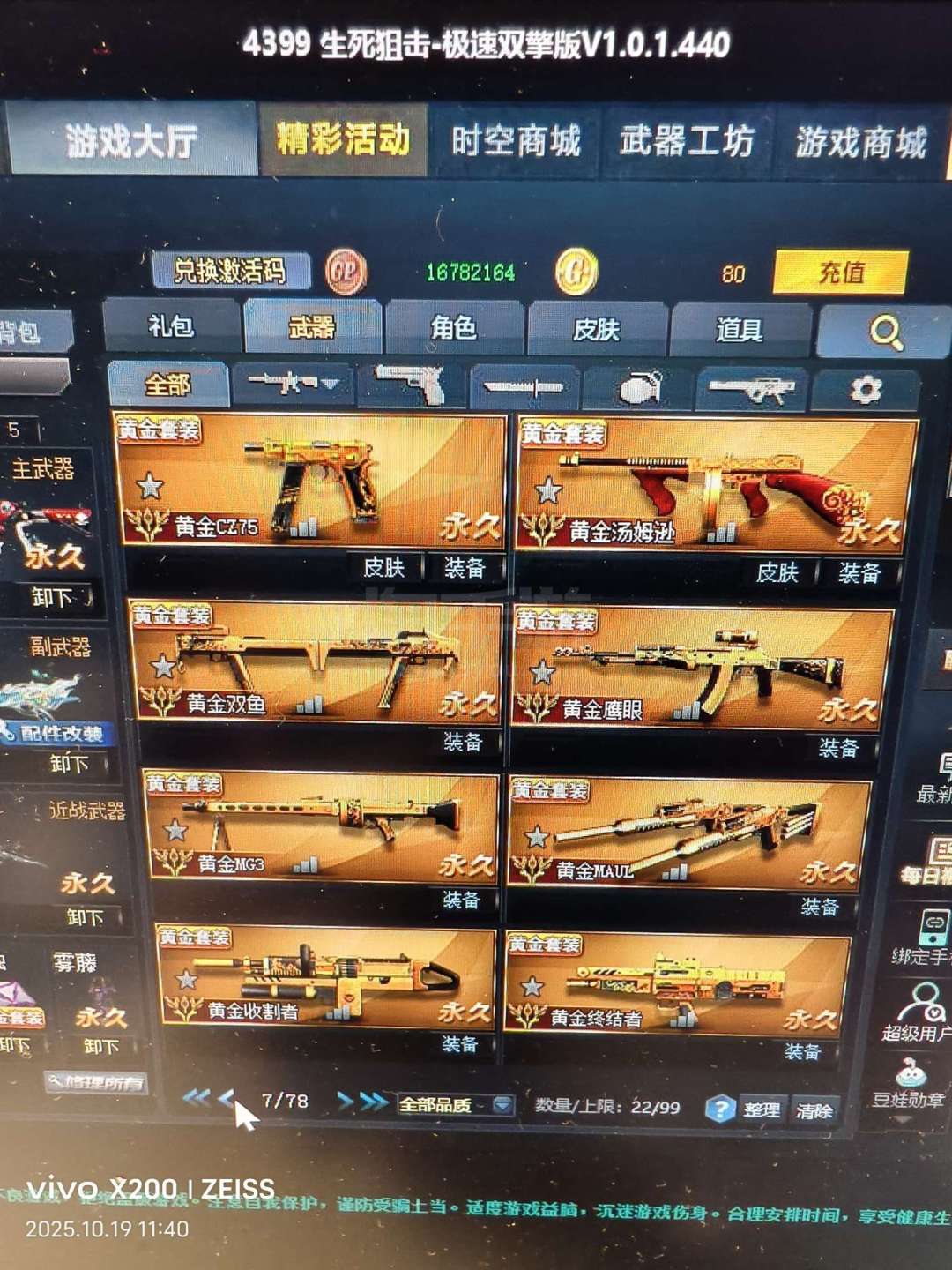 生死狙击(端游)【端游】生死狙击极品V7好号,充了很多钱,什么模式都能打,非常多的好武器,无限ex,屠魔,ak天神,原石之怒