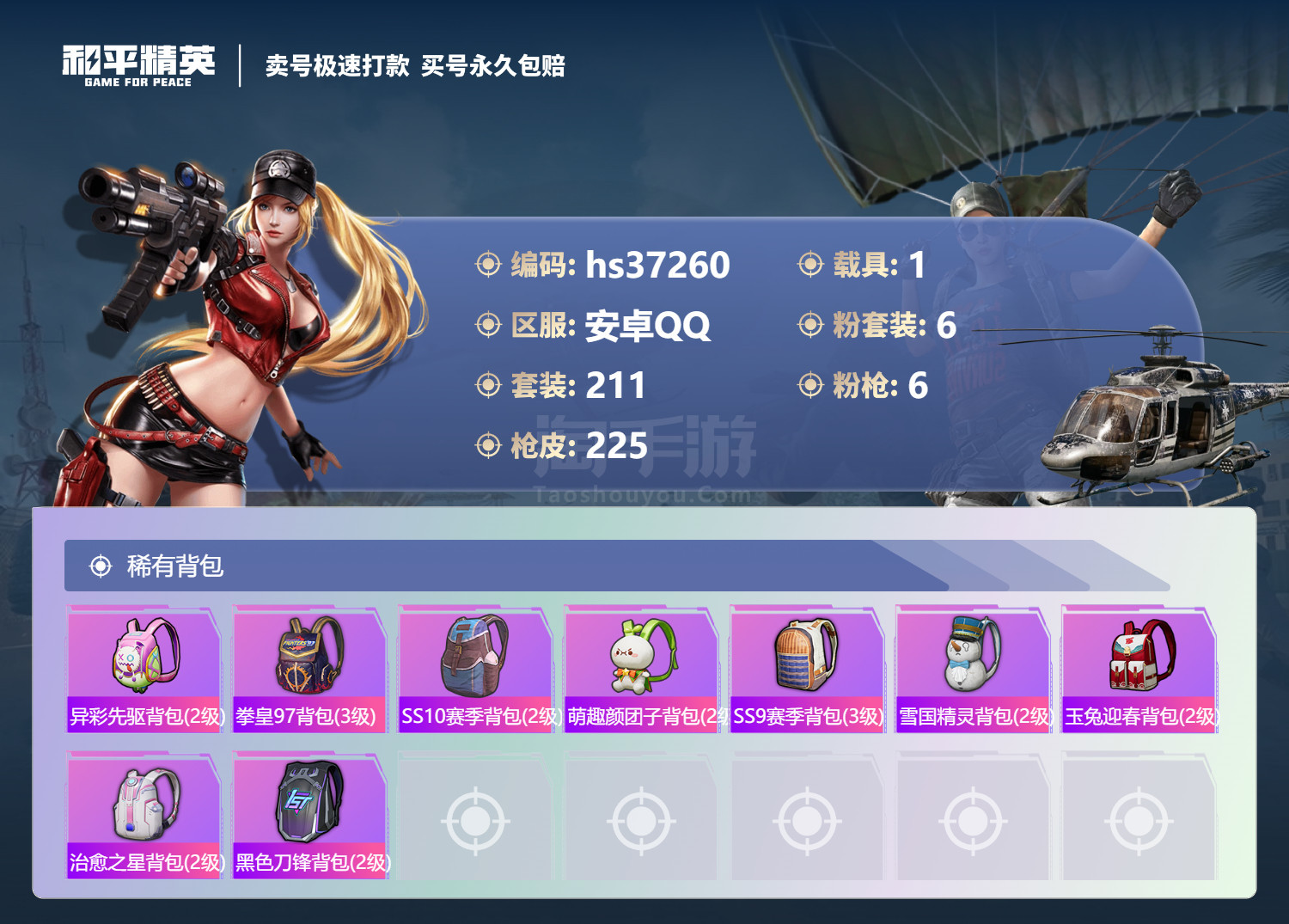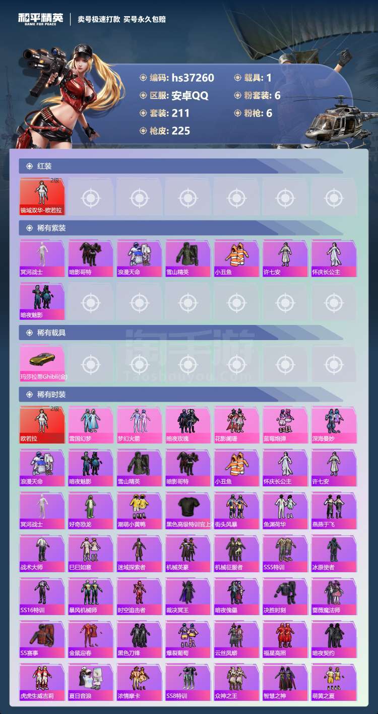 hs37260 安卓手Q-19王牌印记-6粉装-6特效枪-1载具-79974热力值-211套装-22