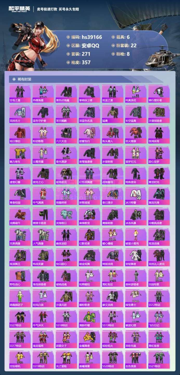 hs39166 安卓手Q-17王牌印记-有战神框-22粉装-8特效枪-6载具-134283热力值-2