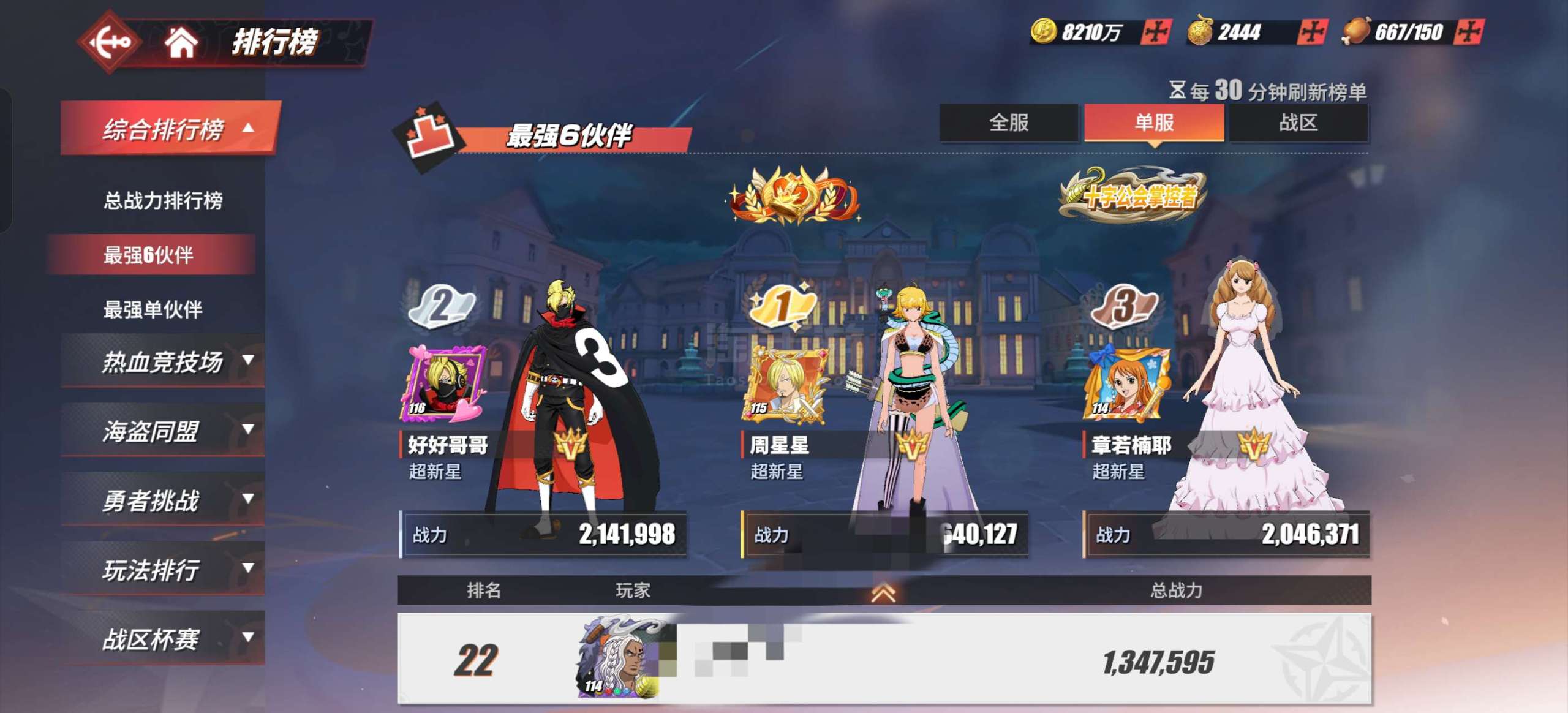 航海王热血航线【安卓小米】6星烬5星新黑胡子5星新老沙5星马上6星福兹福而且新区