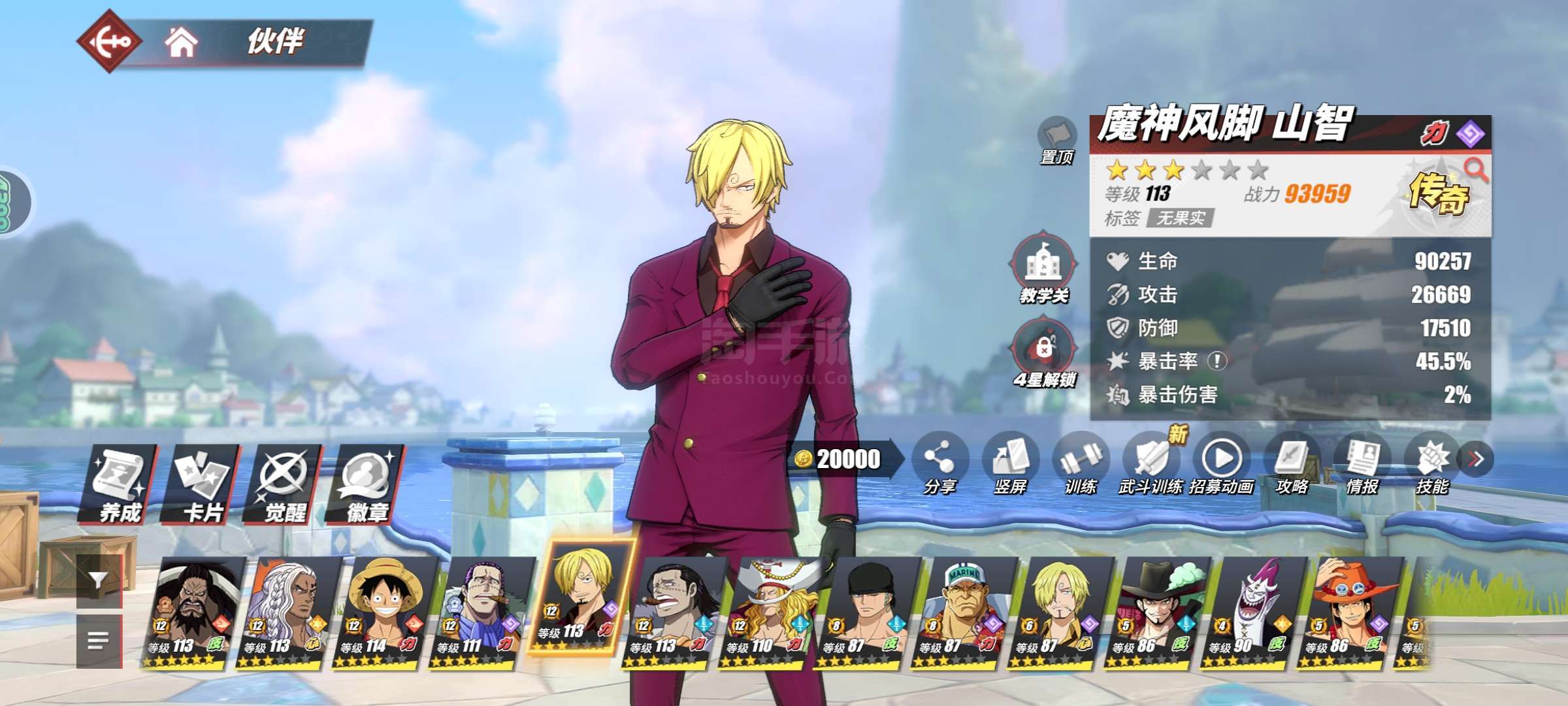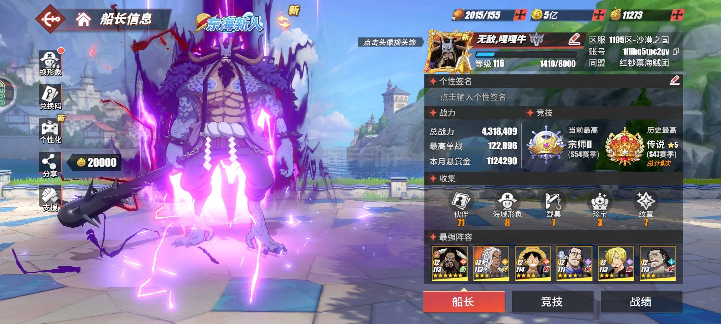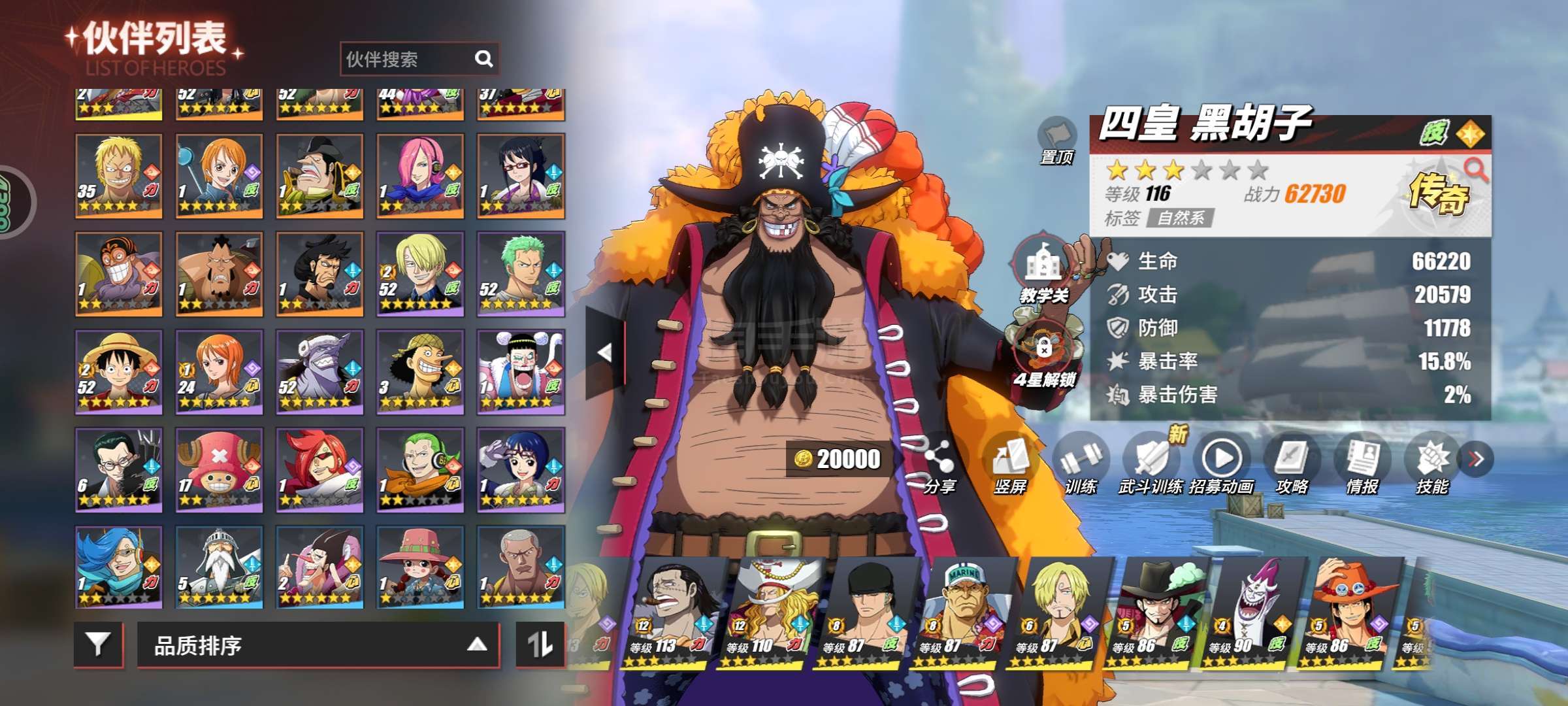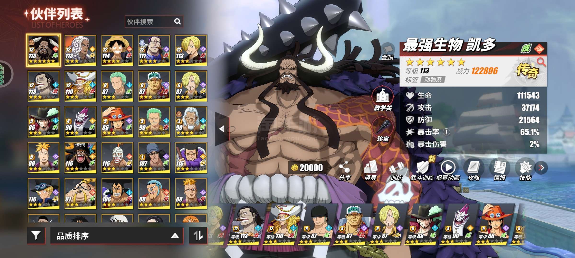 航海王热血航线【安卓4399】400w36传奇4强者双98友情技1.1w金果63抽,6星最强凯多等魔神山治,十字工会老沙,青白,四