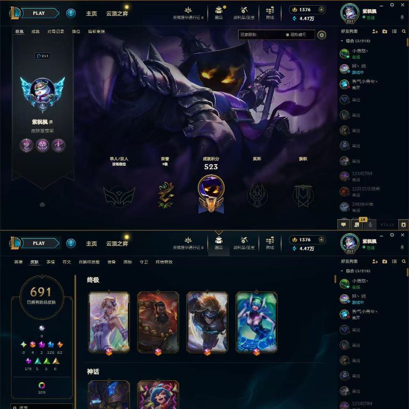 英雄联盟【端游】英雄联盟581皮肤167炫彩