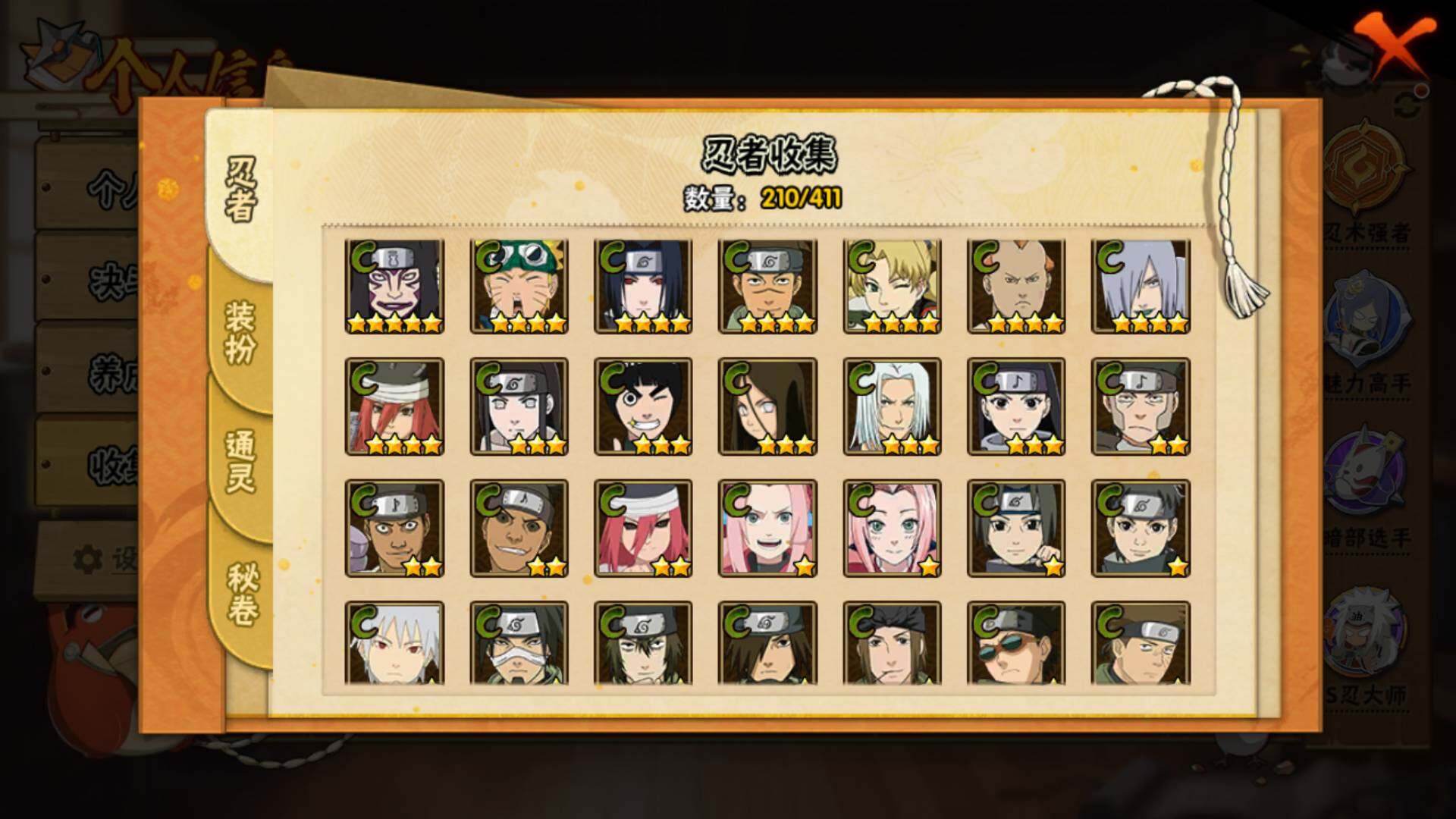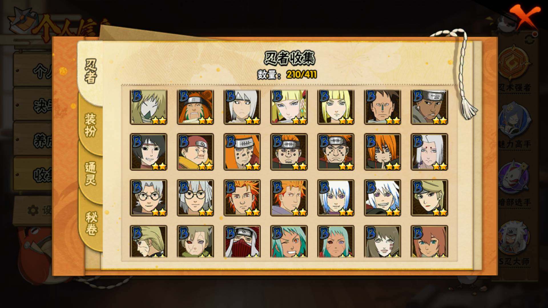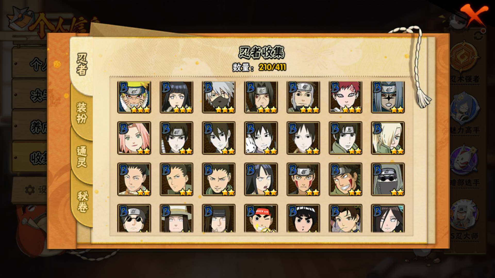 【S级忍者】:半藏「秽土转生」(3星),波风水门「秽土转生」(3星),千手扉间「秽土转生」(3星),宇智波鼬「秽土转生」(3星),宇智波斑「秽土转生」(3星),宇智波斑「秽土转生·解」(3星),宇智波鼬