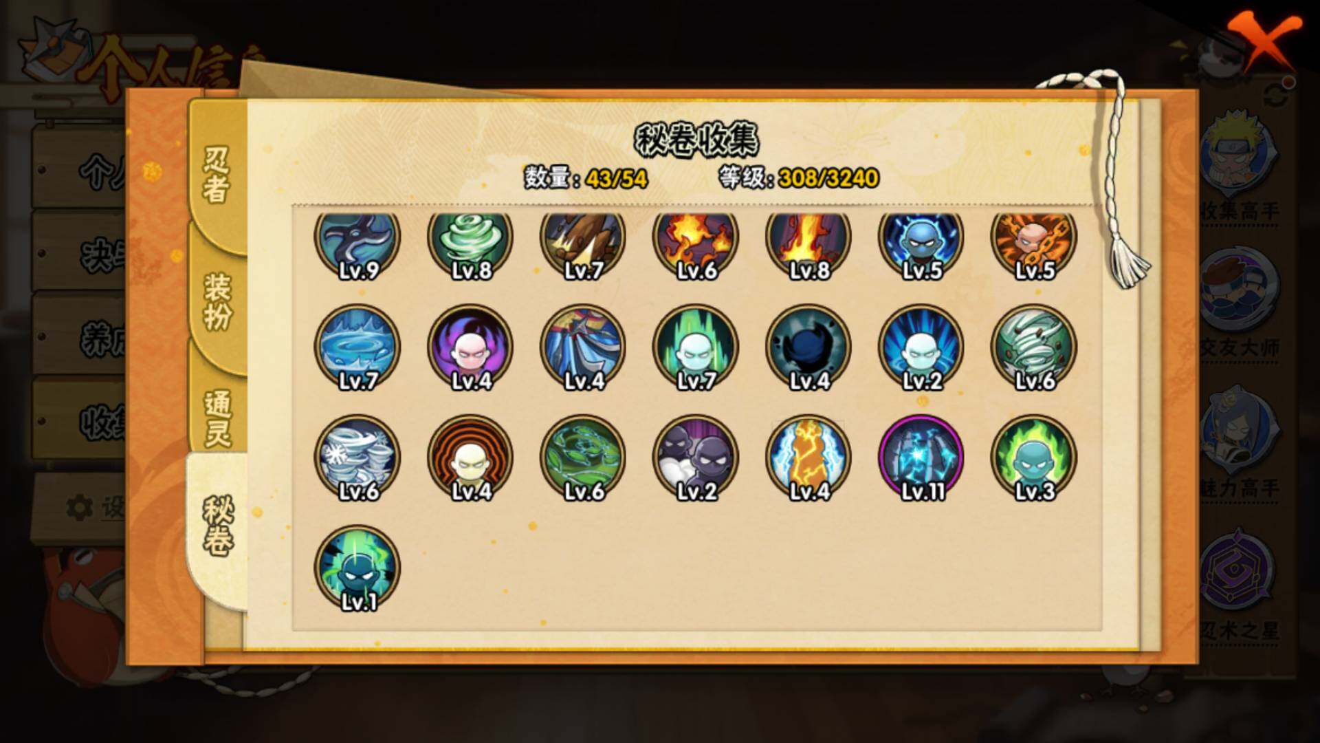 V11 309万战力 8S级忍者数-20A级忍者数 创立柱间60片 秽土解斑63片 LL5295: