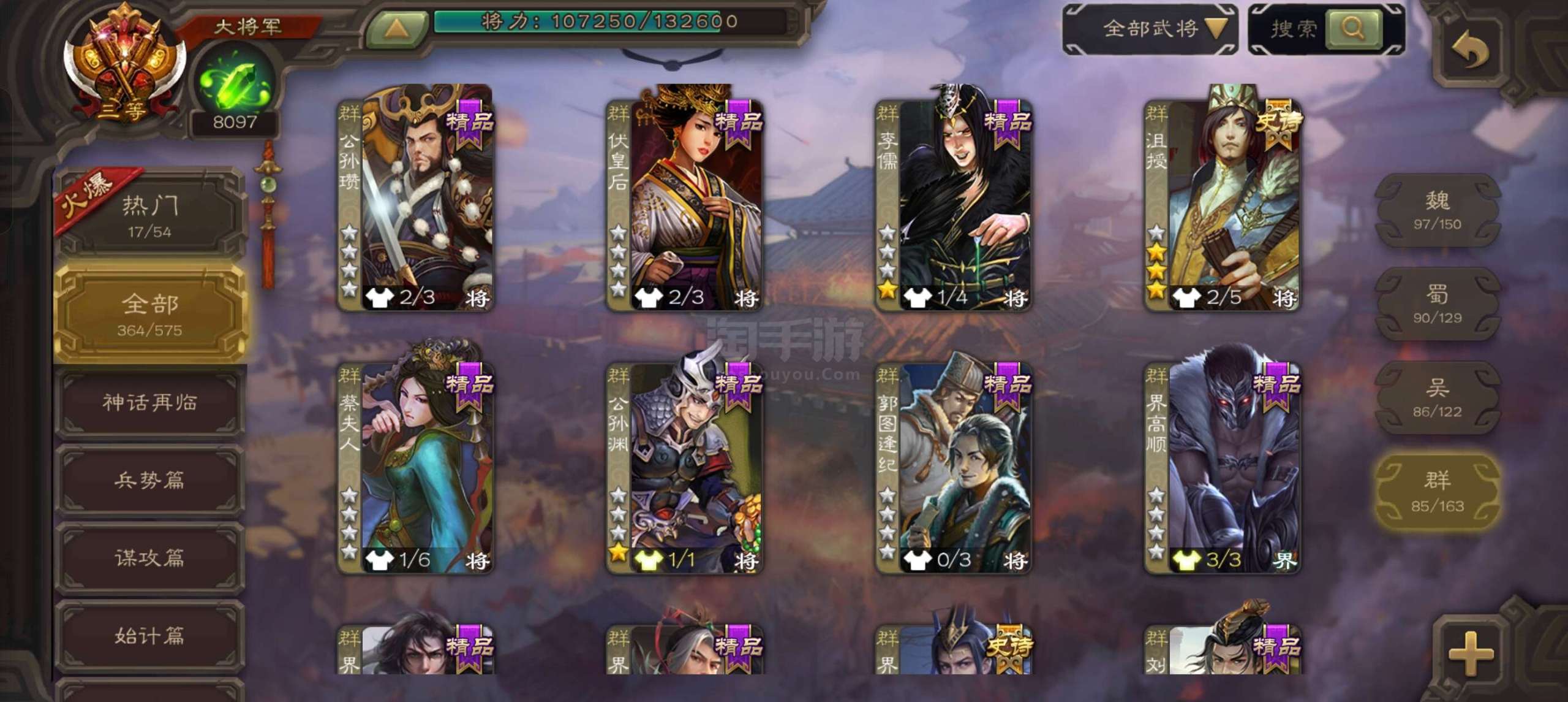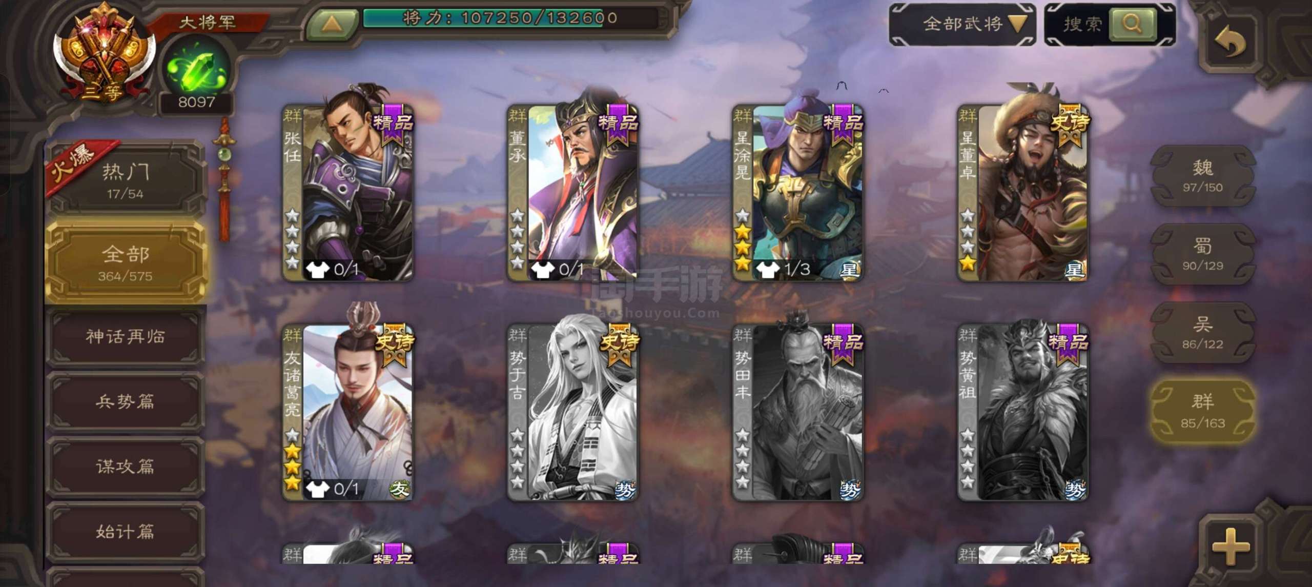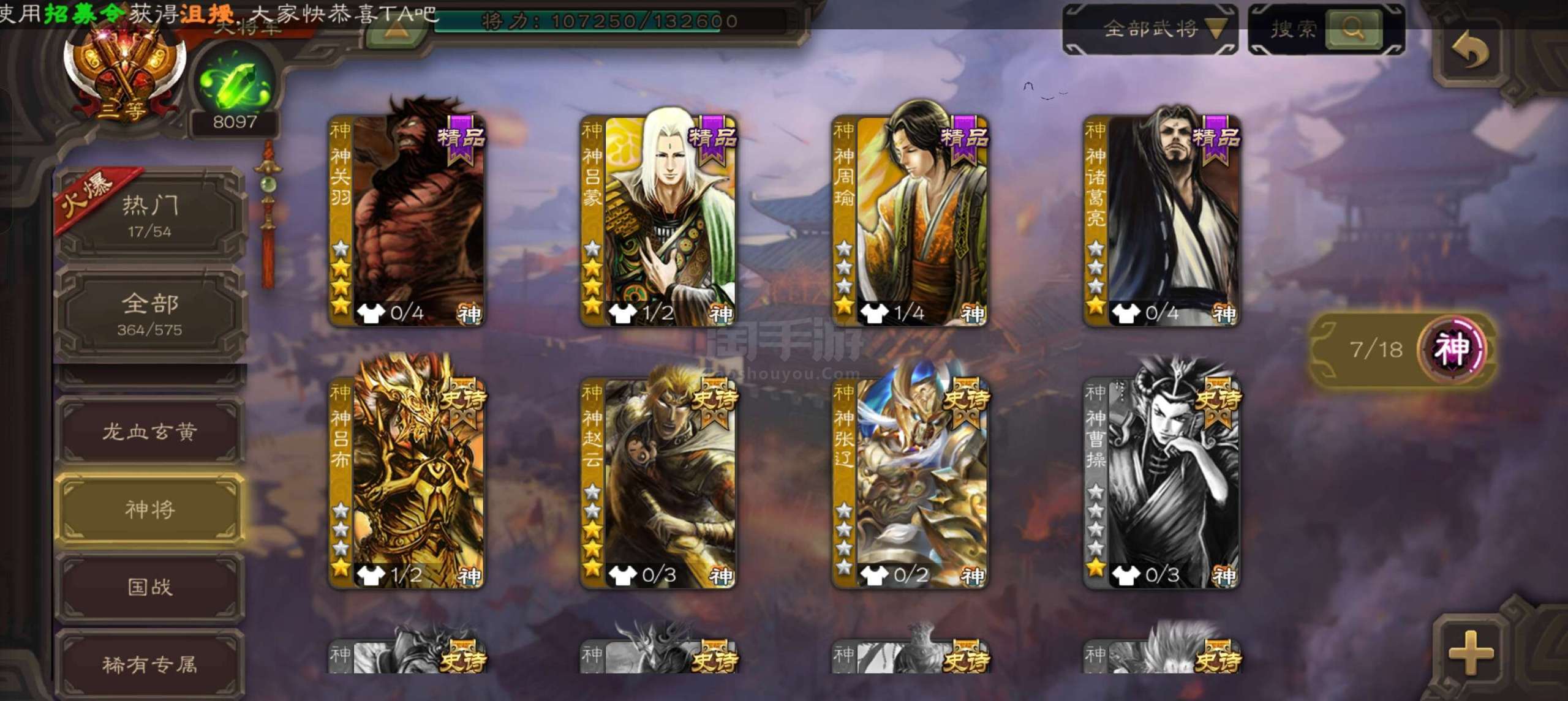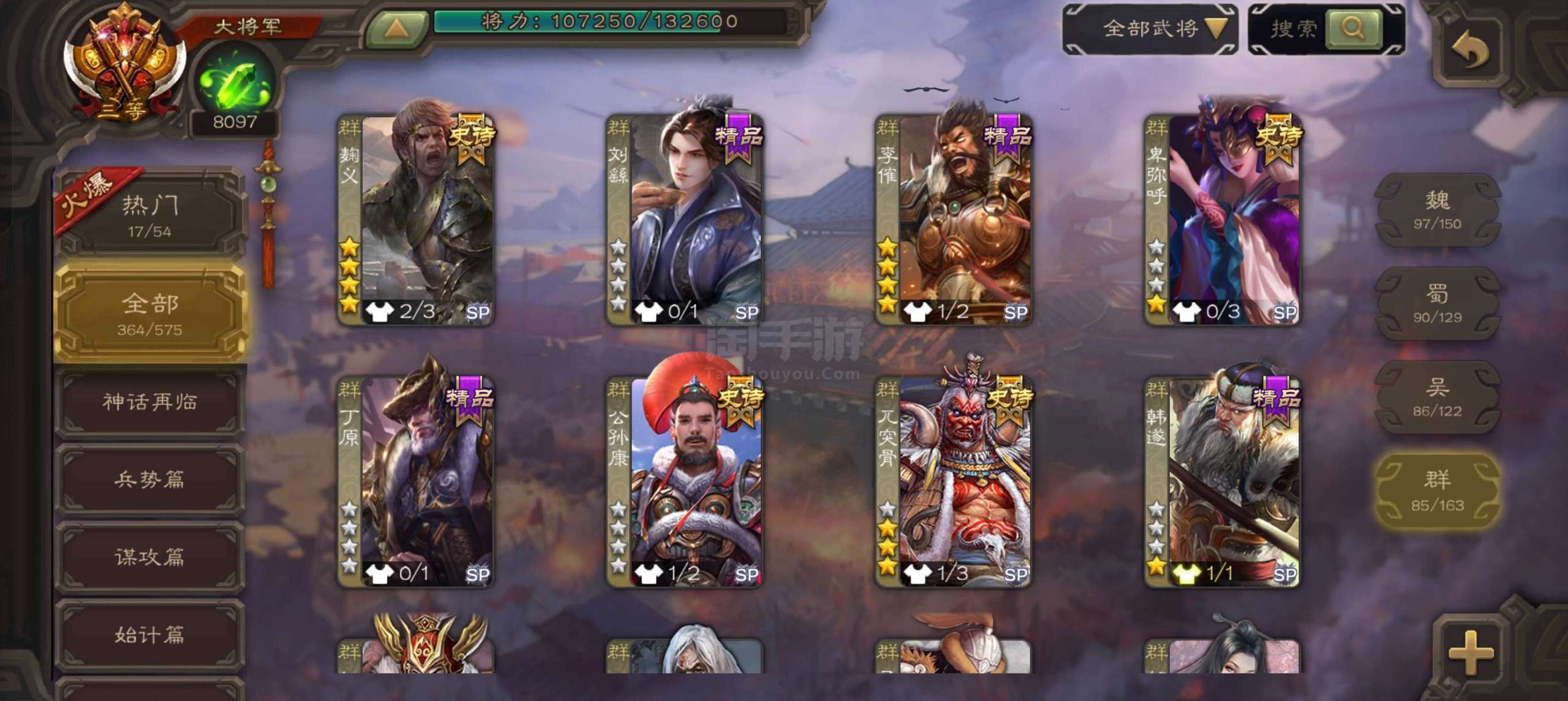 三国杀【安卓OPPO】v9大将军,友诸葛亮,30珠子,张辽龙生九子,多将魂和鸟毛