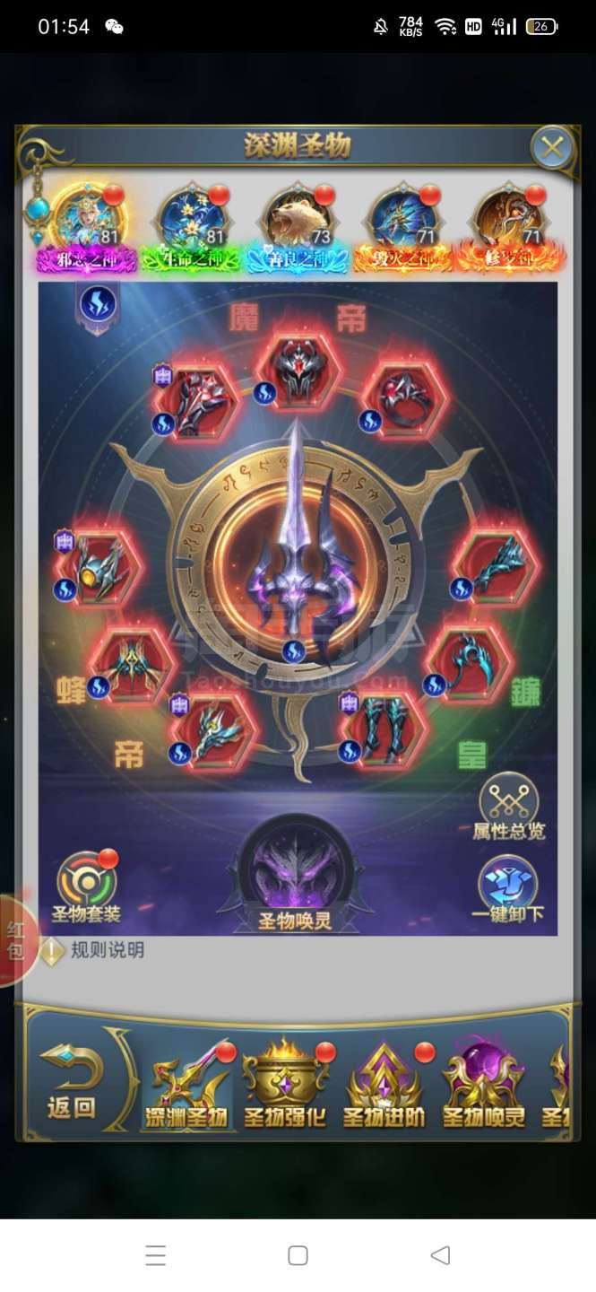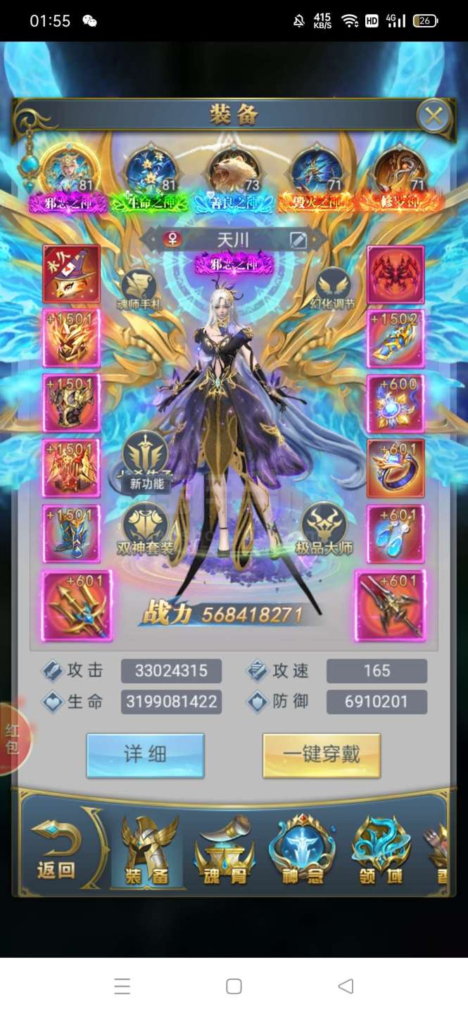 天使257 满大奖凶兽也基本满了 三神套有海神大翅膀有邪神虎,双绝魂导器,三套秘法红进阶一套机甲一套