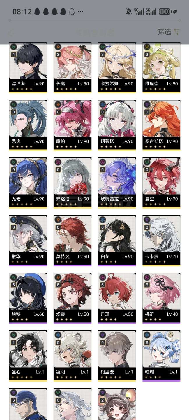 角色都有专武除了水母还有夏空,三命卡提长离还有仇远,翅膀皮肤,长离皮肤
