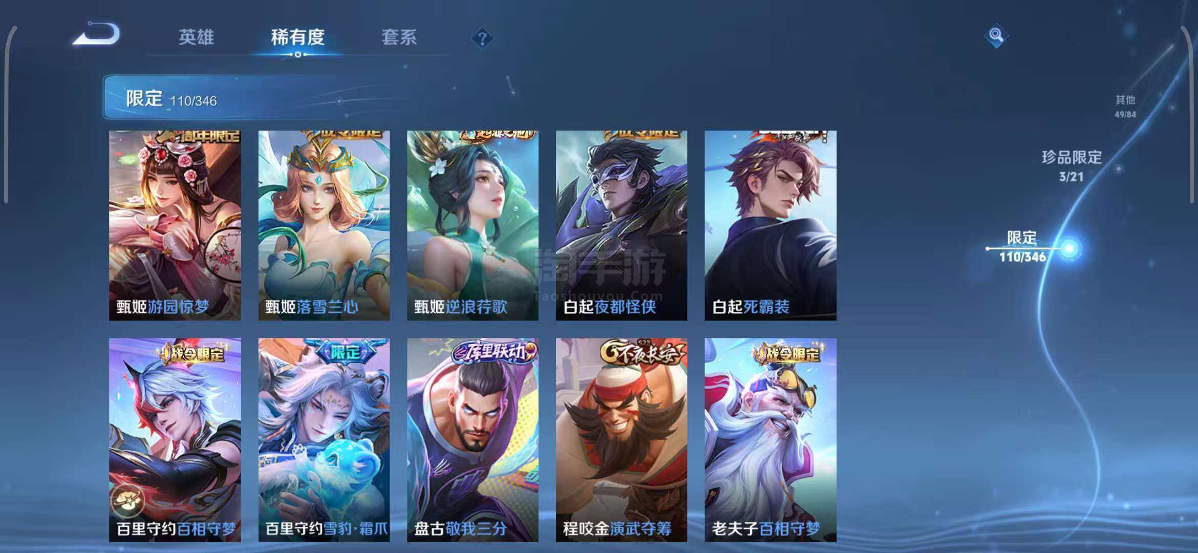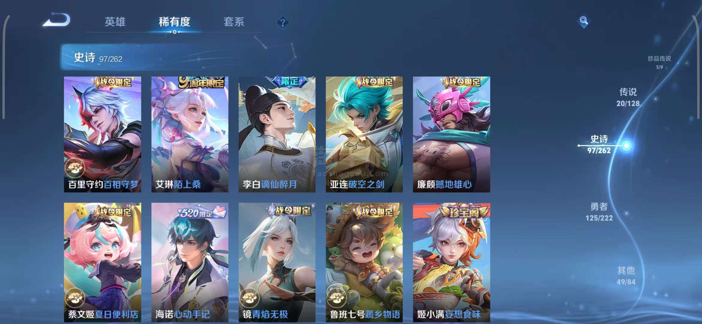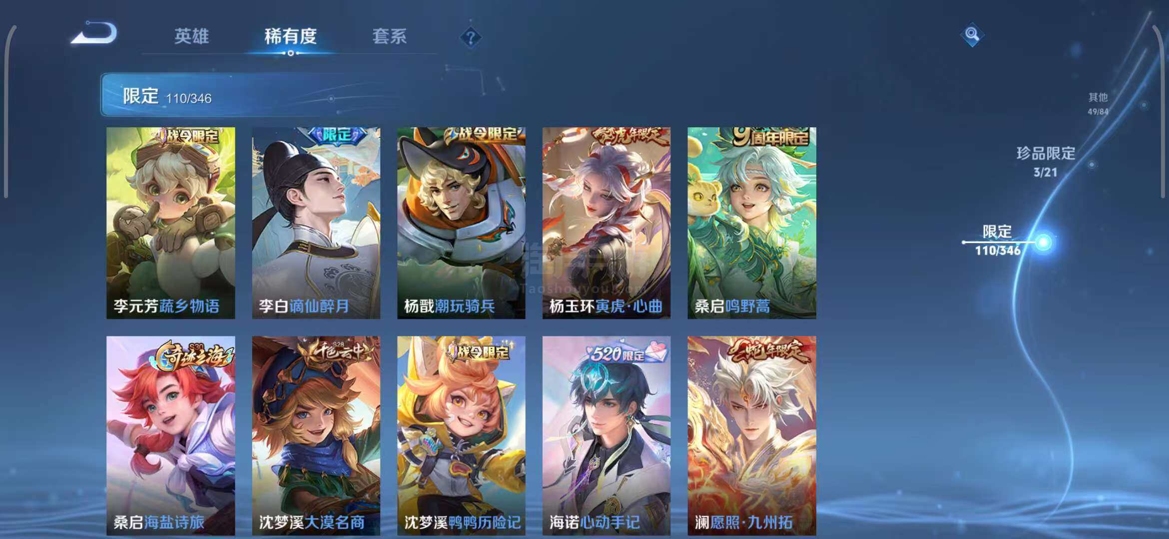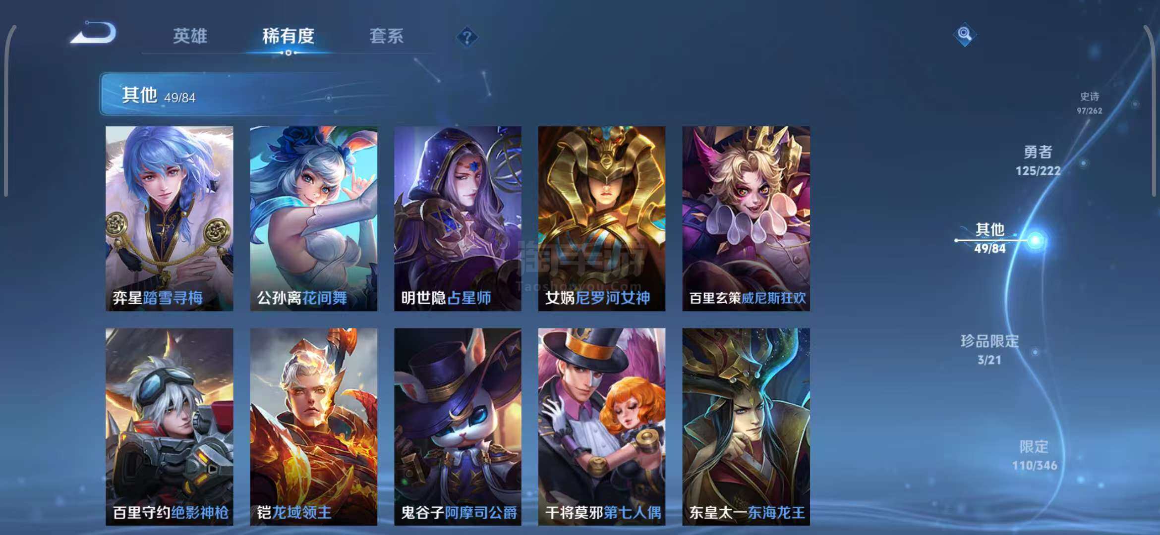 安卓Q-V8-至尊星耀V段位-126英雄-296皮肤-2典藏-0珍品无双-0无双-3珍品传说-20传
