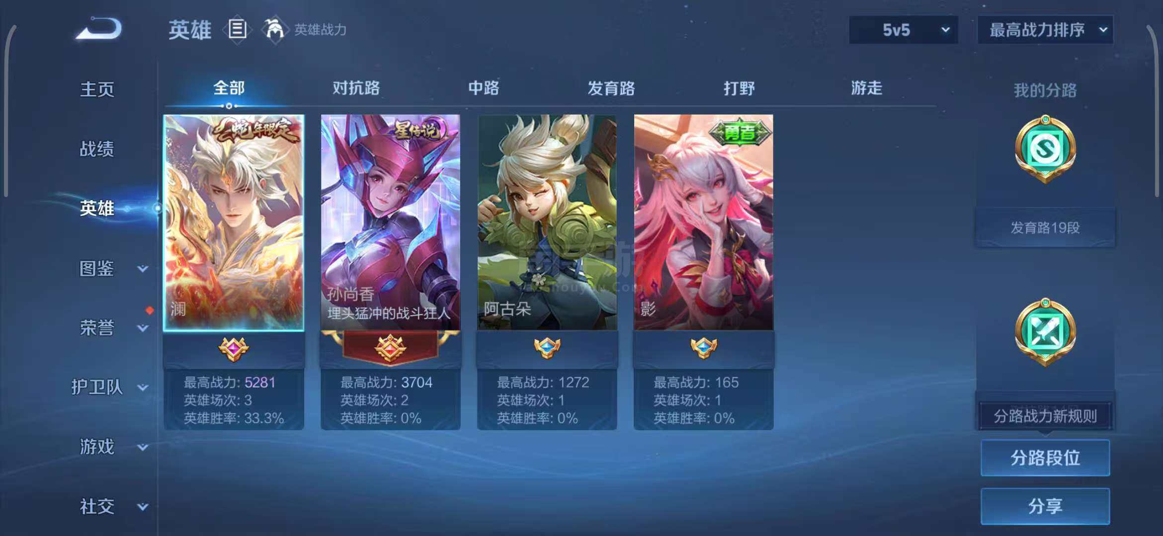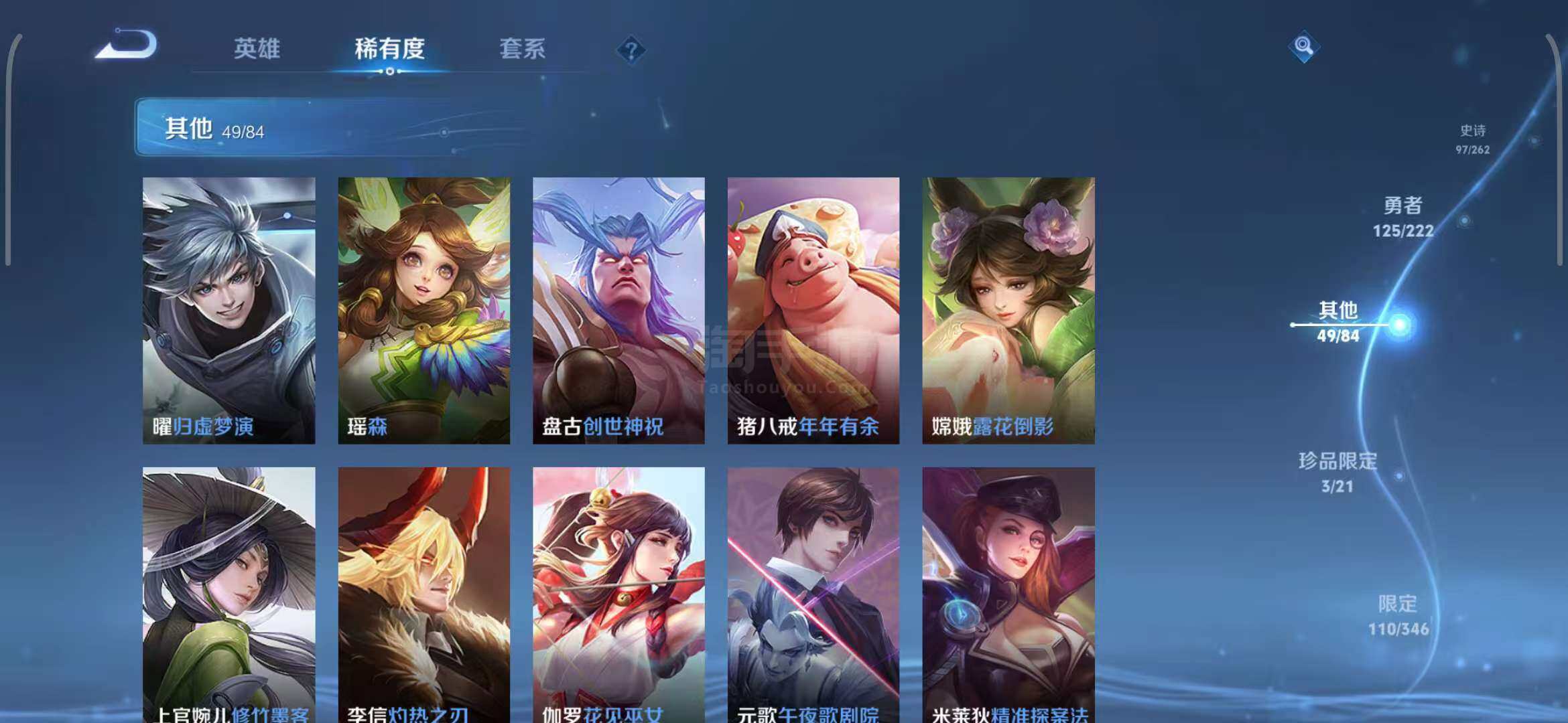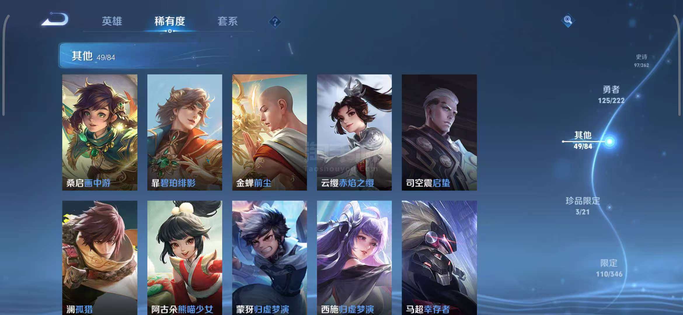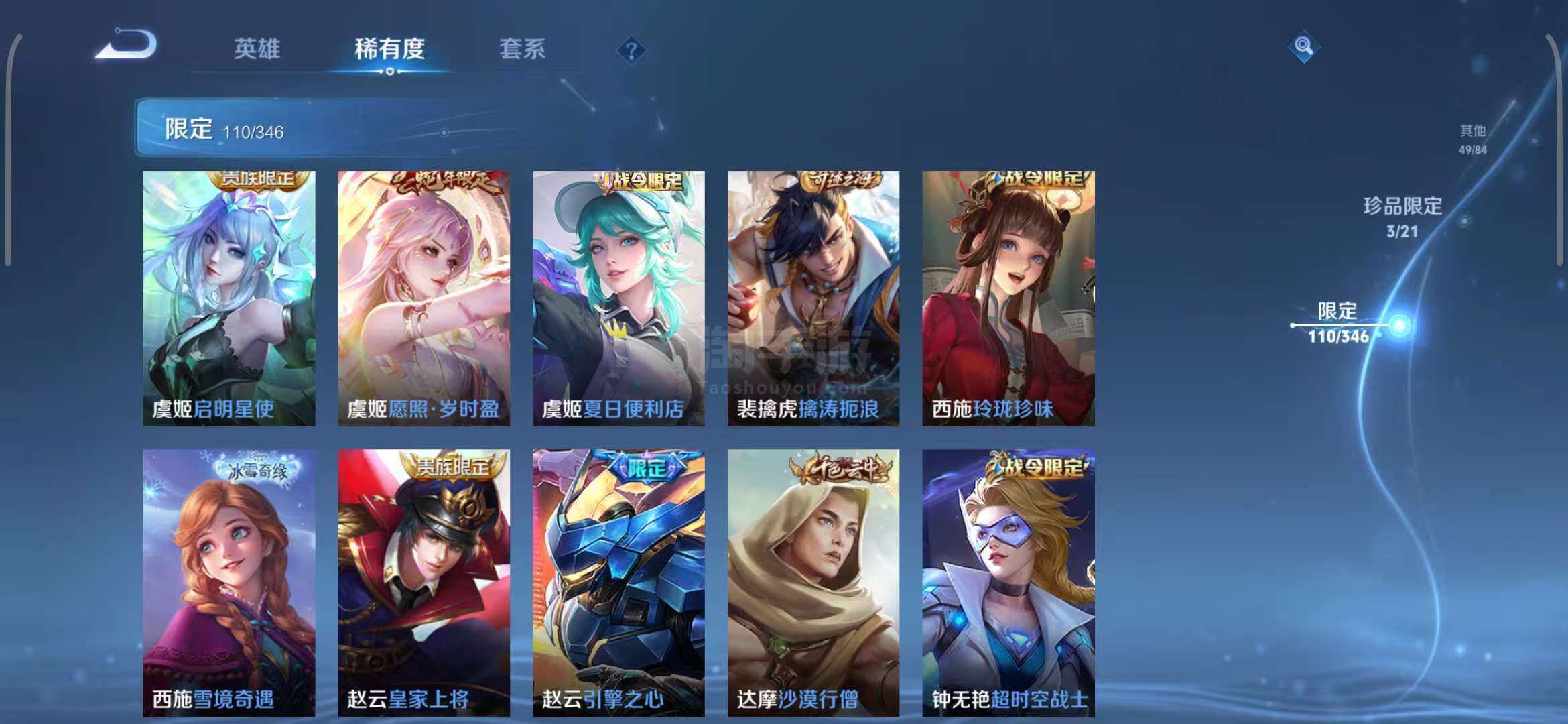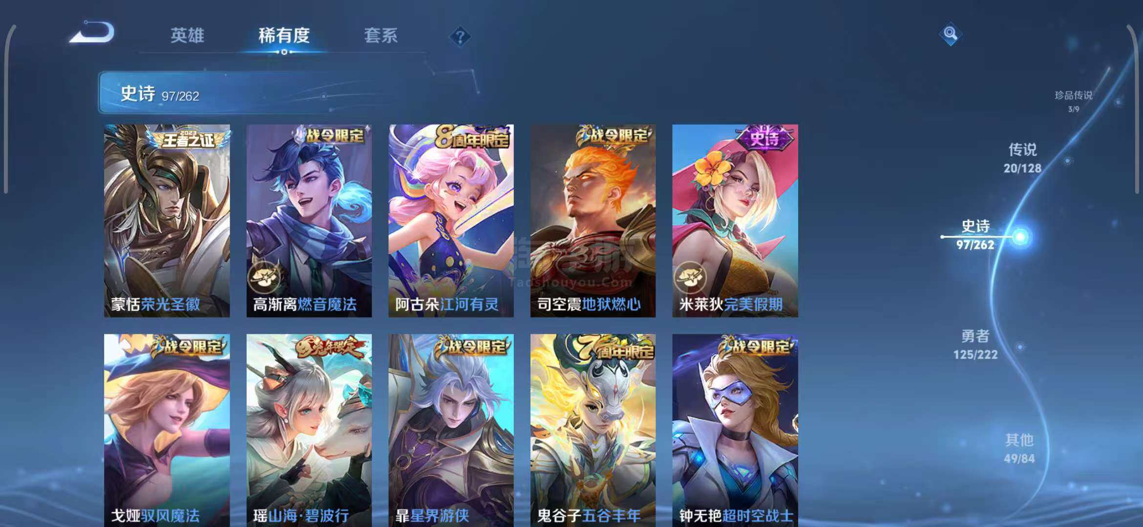 安卓Q-V8-至尊星耀V段位-126英雄-296皮肤-2典藏-0珍品无双-0无双-3珍品传说-20传