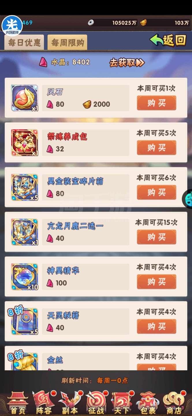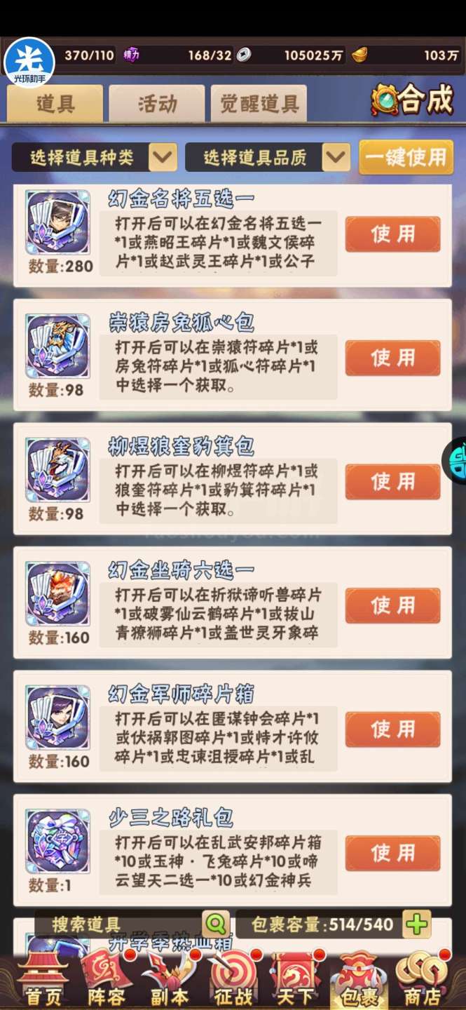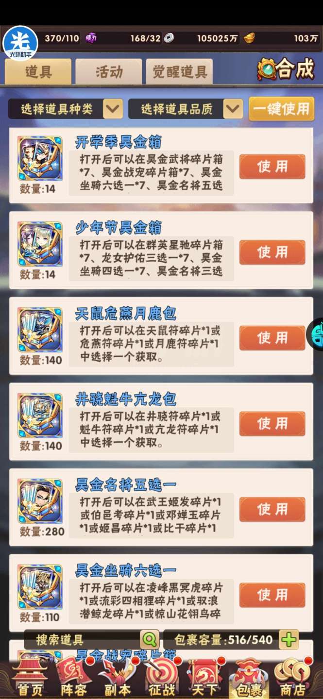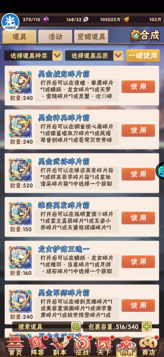 现有元宝105万左右。签到币16万+,每天可换大量基础资源;魂金装备4件套,⌛昊金双兵符,魂金全跟未漏;双丹7万+,刷到150轻松突破!水晶8000+,换翅膀很舒服!⏰魂金:武将、战旗、名将、军师、宠物 、马、神兵、美人全可合成,⏰果盘游戏APP下载少年三国志(五个字的版本)