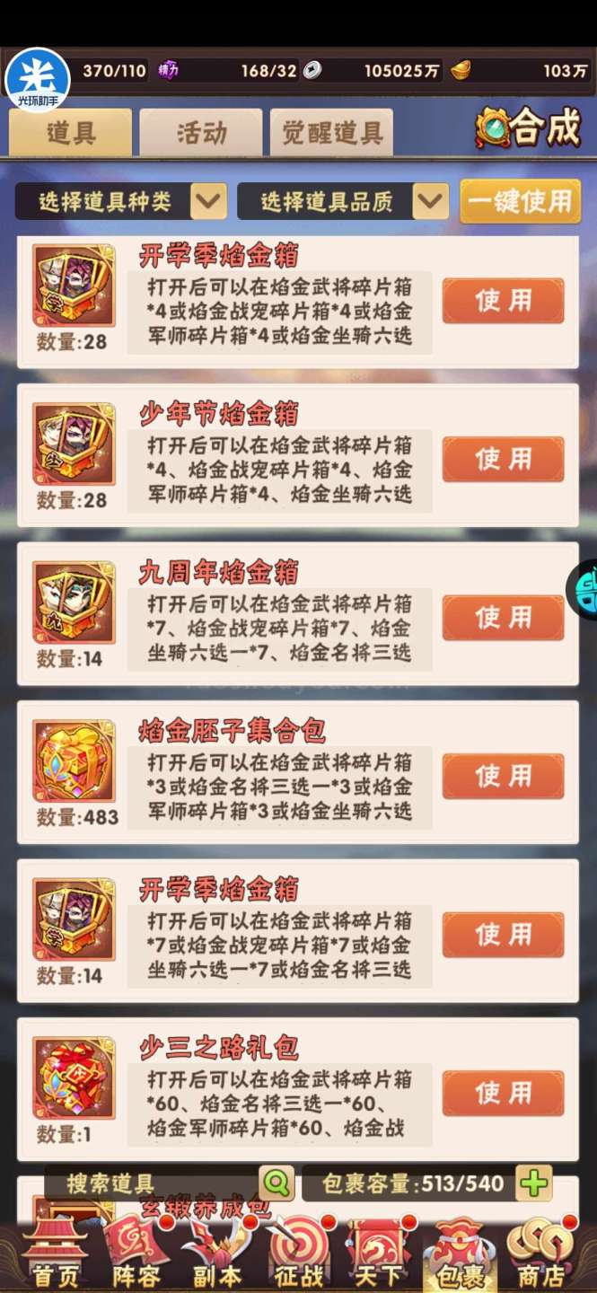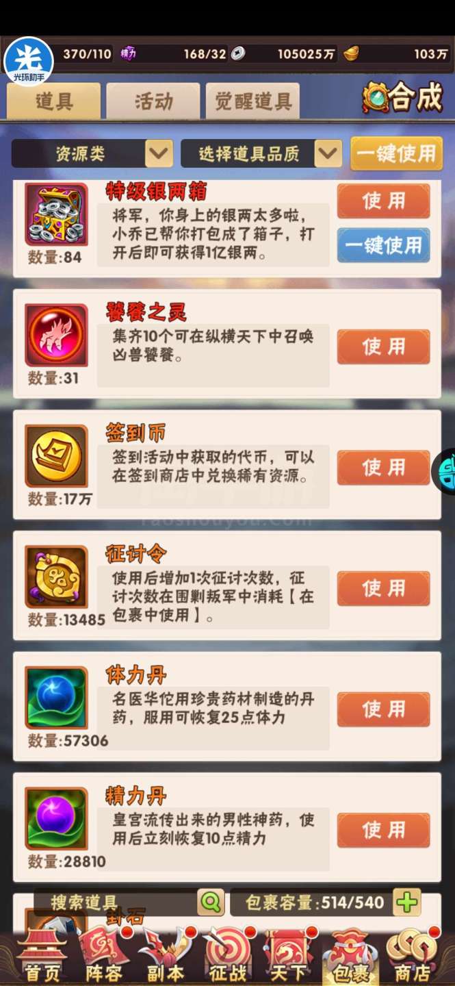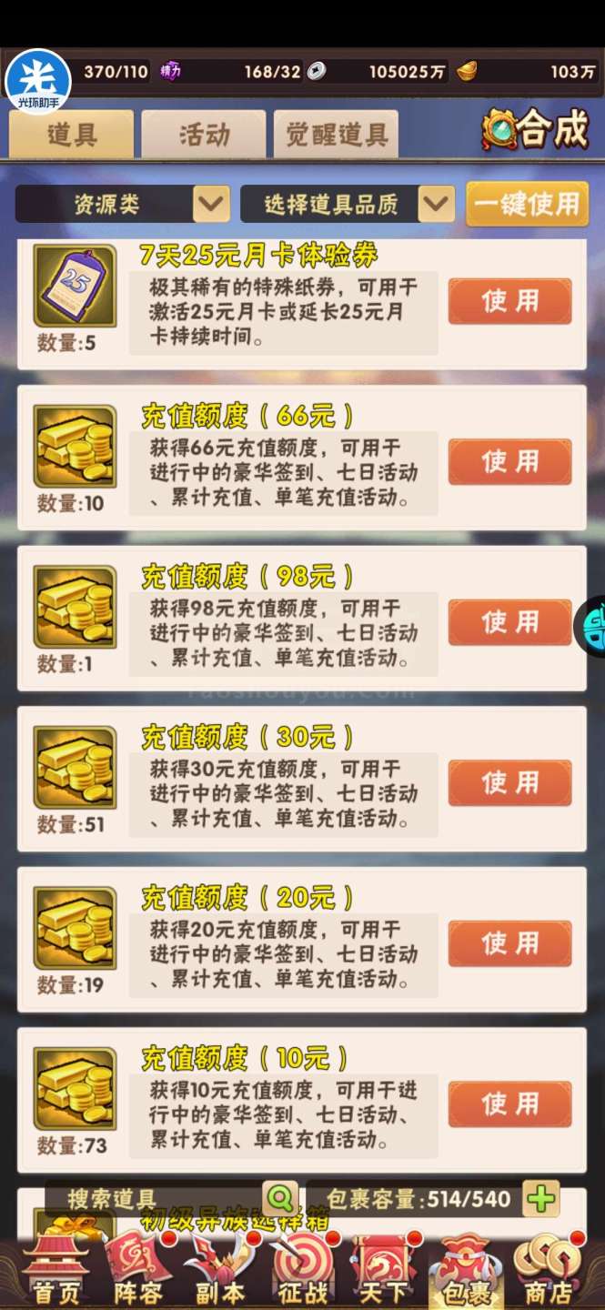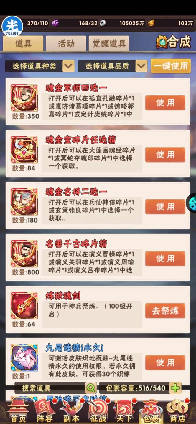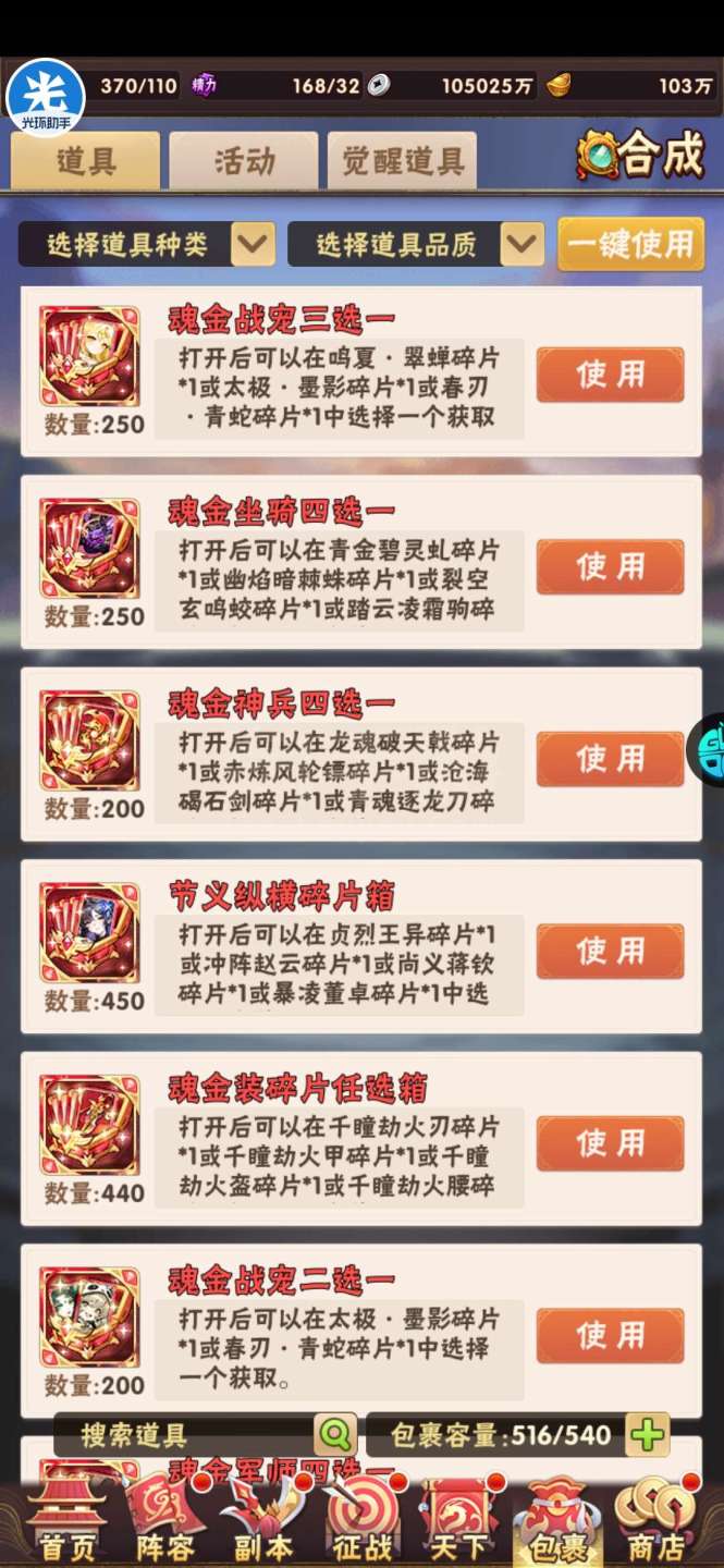 现有元宝105万左右。签到币16万+,每天可换大量基础资源;魂金装备4件套,⌛昊金双兵符,魂金全跟未漏;双丹7万+,刷到150轻松突破!水晶8000+,换翅膀很舒服!⏰魂金:武将、战旗、名将、军师、宠物 、马、神兵、美人全可合成,⏰果盘游戏APP下载少年三国志(五个字的版本)