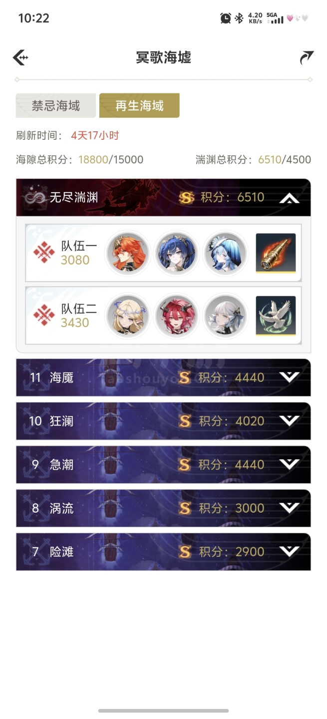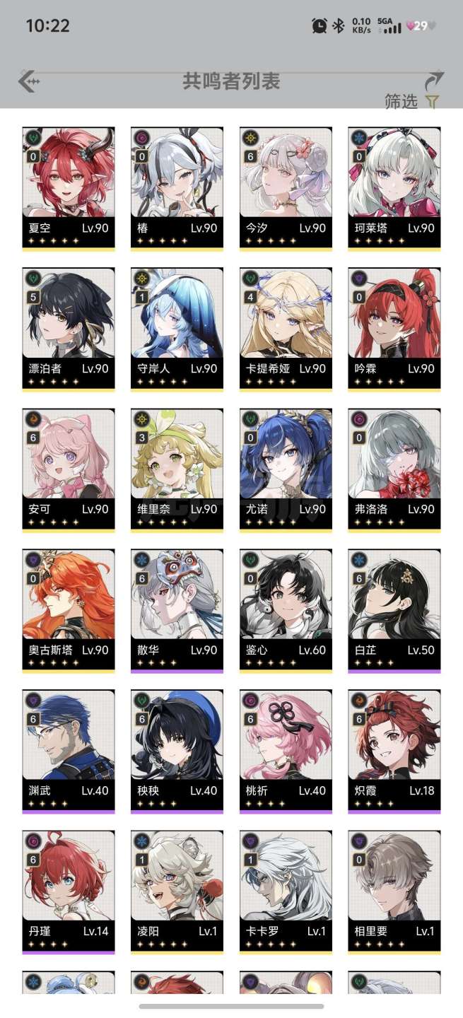 满链今汐,满链安可,四链卡提,三链维神,角色近全毕业,深塔海墟随便打无压力,探索全满,非常好的号