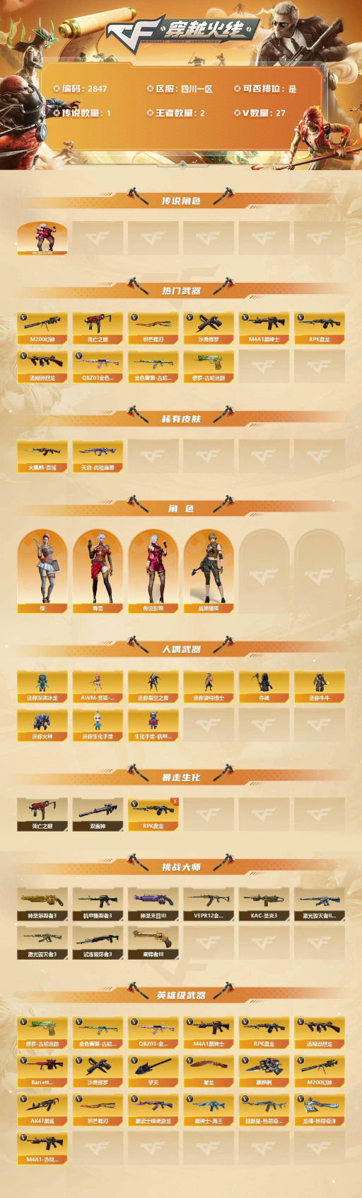 穿越火线(CF)【端游】四川一区-27V-2王者-0炫金【传说角色】:传说影煞