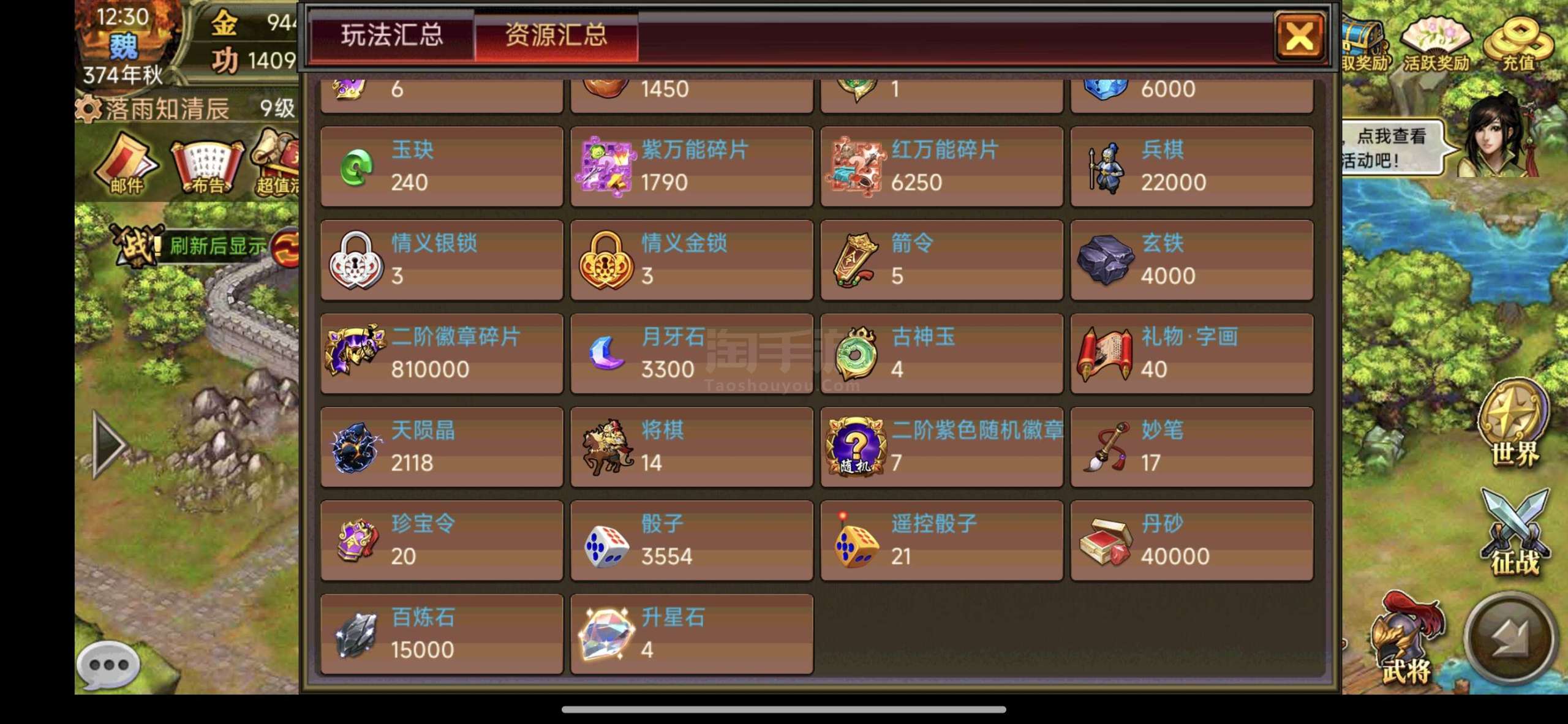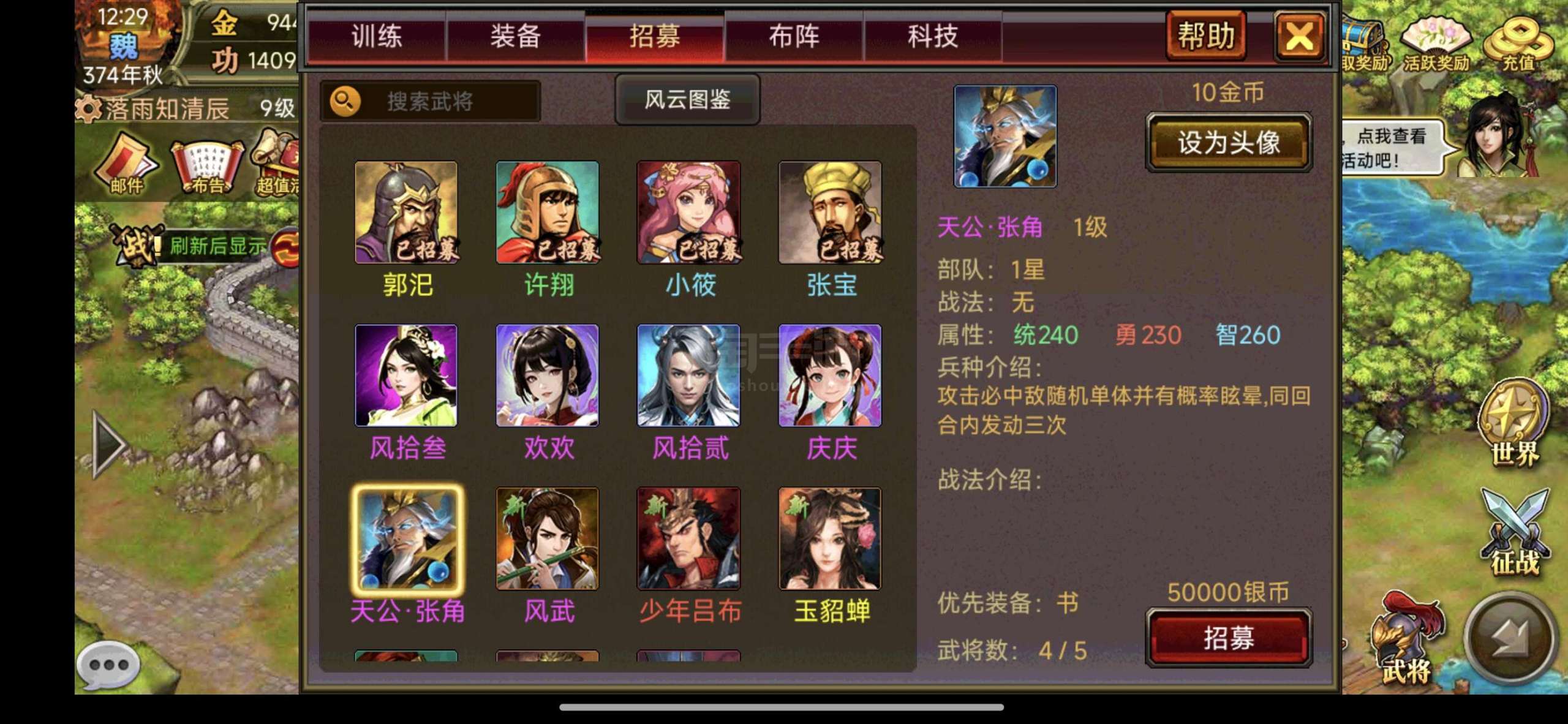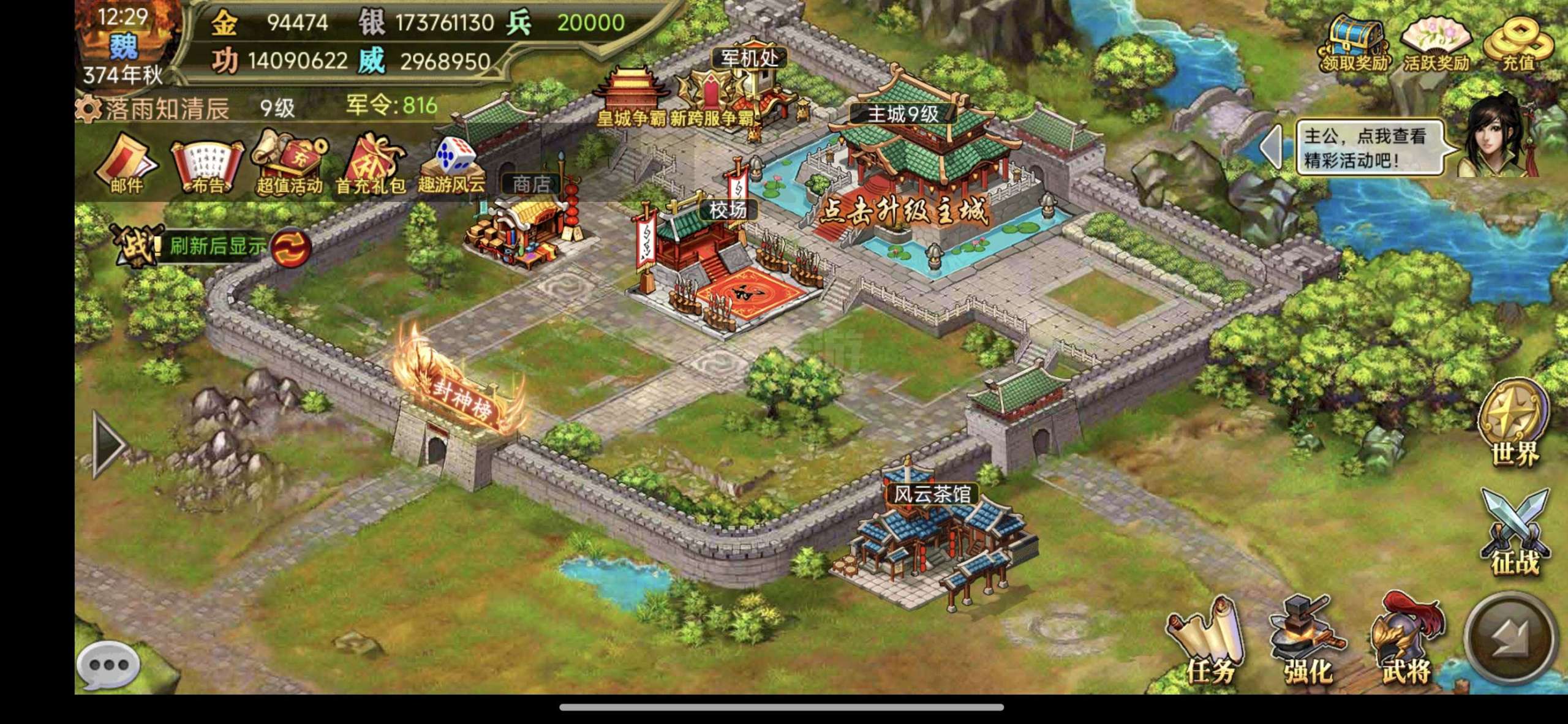 风云天下OL【安卓官方】还价勿扰,549区9级号金9.4万金,自带15万神将天公张角,公孙瓒势力