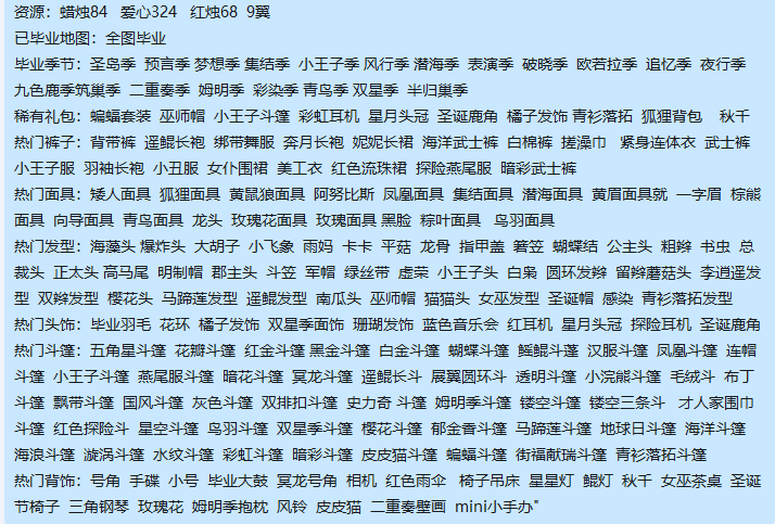 毕业季节:圣岛季 预言季 梦想季 集结季 小王子季 风行季 潜海季 表演季 破晓季 欧若拉季 追忆季 夜行季 九色鹿季筑巢季 二重奏季 姆明季 彩染季 青鸟季 双星季 半归巢季