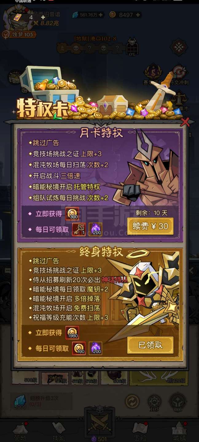 终身卡,月卡,圣堂7级(1050点),神殿二级,炎皇套齐,蚀梦搭配106,边玩边卖!