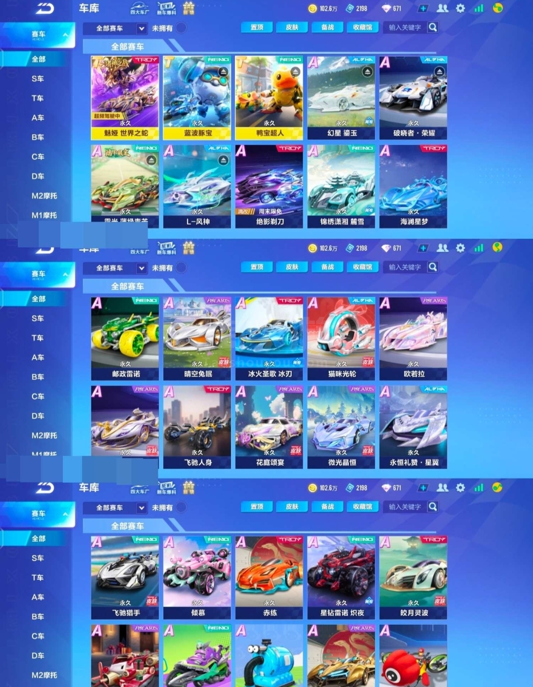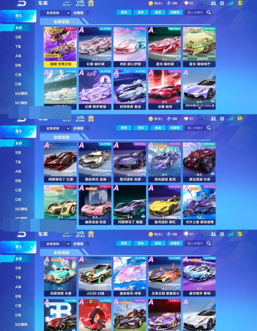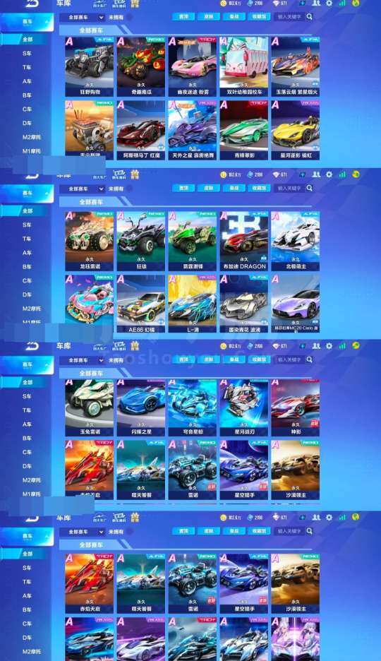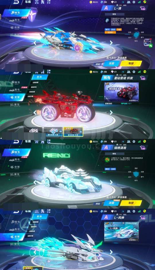 最强联赛车霆光幻星雷诺L风神各种A车几十个男女多套动态衣服