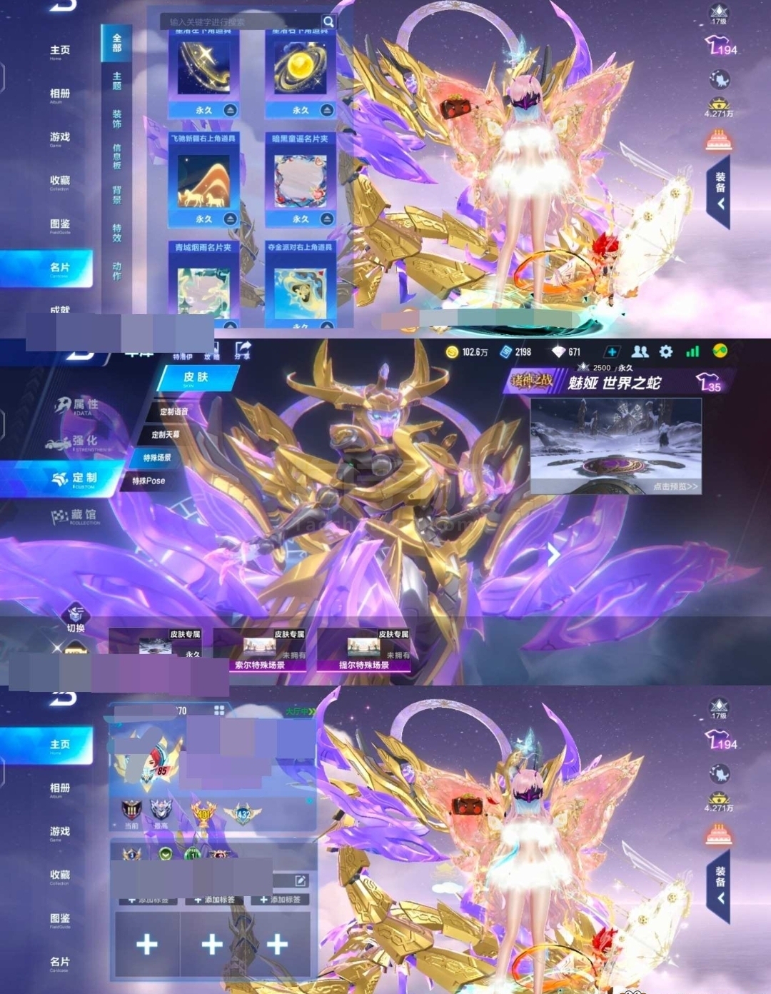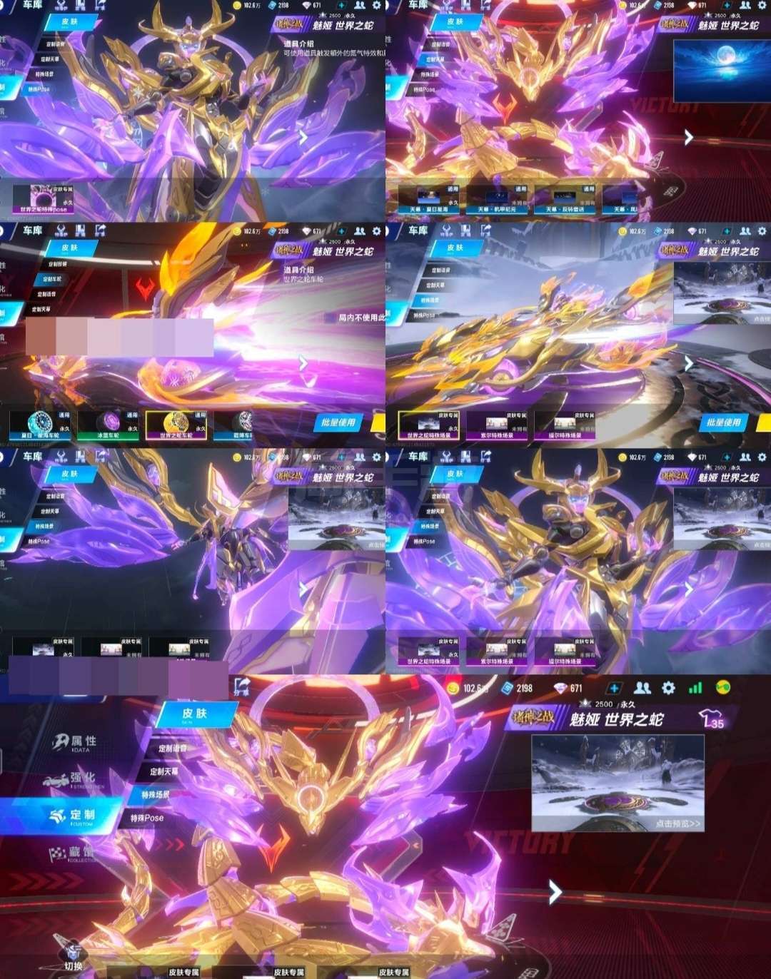 QQ飞车手游【苹果QQ】3T车机甲魅娅带世界之蛇全套特殊pose特效不错首款双形机甲