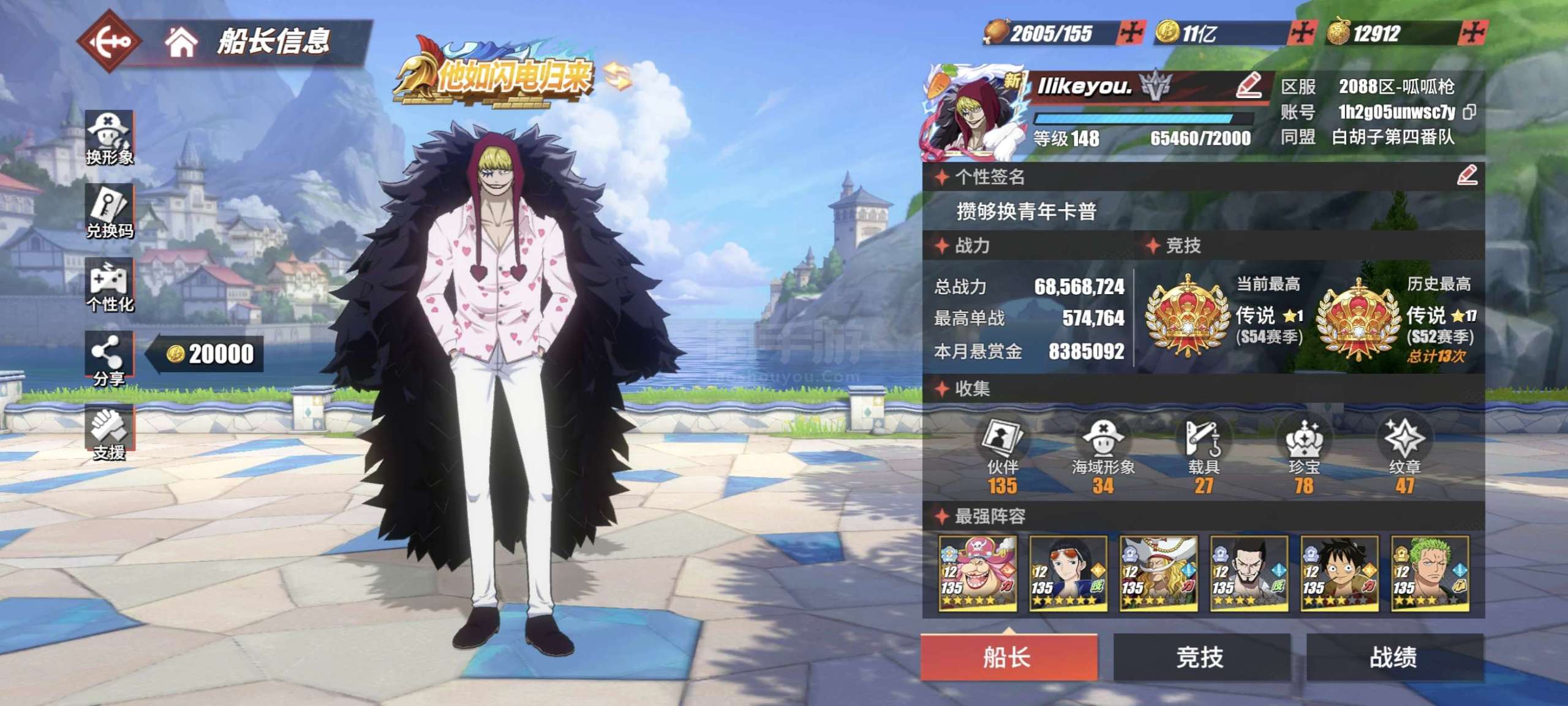 航海王热血航线【安卓华为】6800万战力,差四个全图鉴,1.3万金果,真心出,低于800勿扰,我也不会回