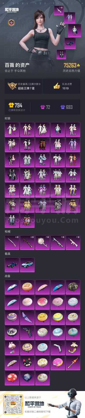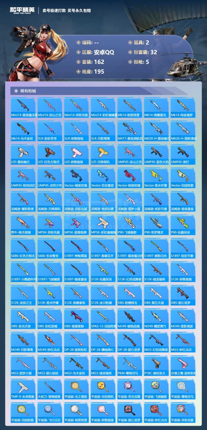 a3856/安卓QQ/-9王牌印记-32粉装-5特效枪-2载具-75263热力值-162套装-195