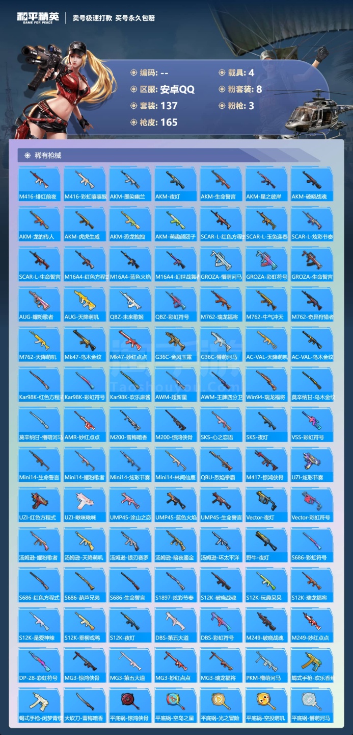 a3770/安卓QQ/宝马M4(灿阳金)/-1王牌印记-8粉装-3特效枪-4载具-60488热力值-