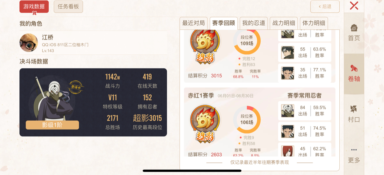 20s,30a,有漂泊佩恩和漂泊带土(有时装)和新水,战力11410000,段位超影,v12,红夜44片,金水60片,仙自61片三代目风影71片,忍战雷53片,账号全部截图里面,实名暂时换不了,实名是