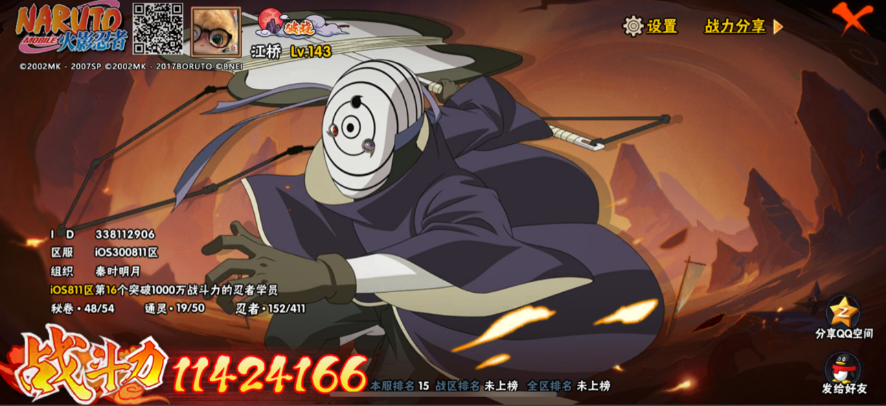 火影忍者【苹果QQ】20s30a有漂泊佩恩和漂泊带土和新水,战力一千一百万可小刀