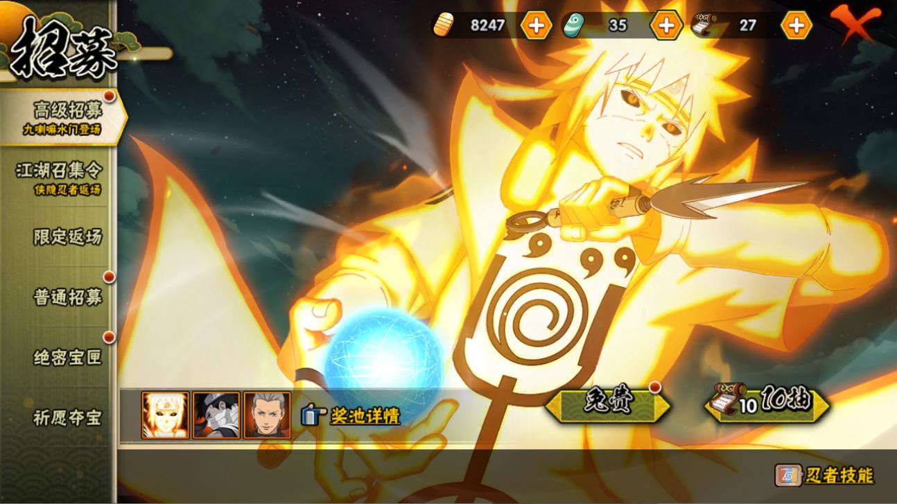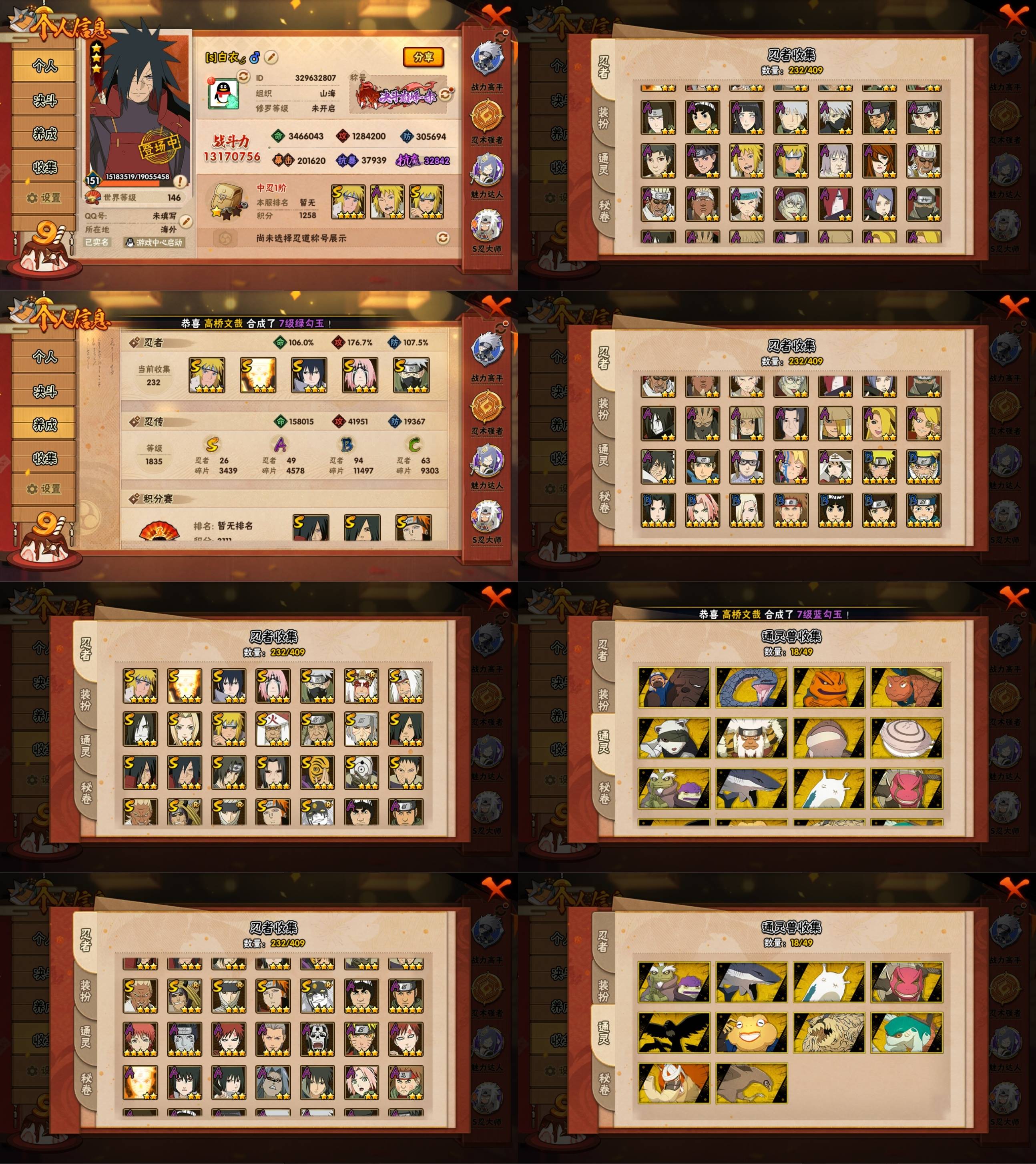 【S忍者】艾「忍界大战」,大筒木桃式,宇智波斑「秽土转生·解」,宇智波佐助「永恒万花筒」,春野樱「忍界大战」,漩涡鸣人「九喇嘛连结」,宇智波带土「忍界大战」,自来也「舞之豪杰」,旗木卡卡西「须佐能乎」,自来也「传说中的三忍」,宇智波鼬「秽土转生」,宇智波斑「秽土转生」,宇智波斑「白面具」,千手扉间「秽土转生」,波风水门「