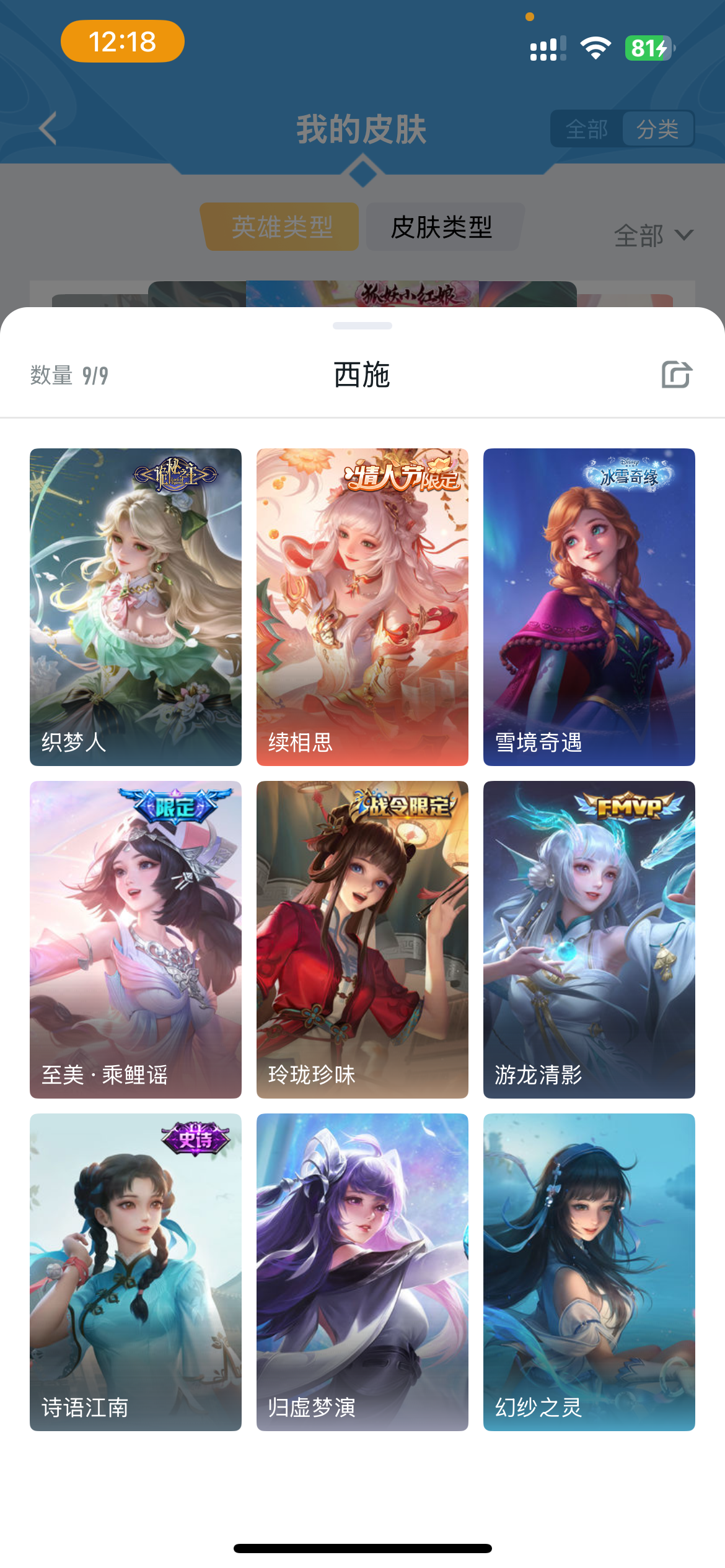 王者荣耀【苹果QQ】西施全皮 瑶荣耀 小乔无双 屝珍品 10传说 等