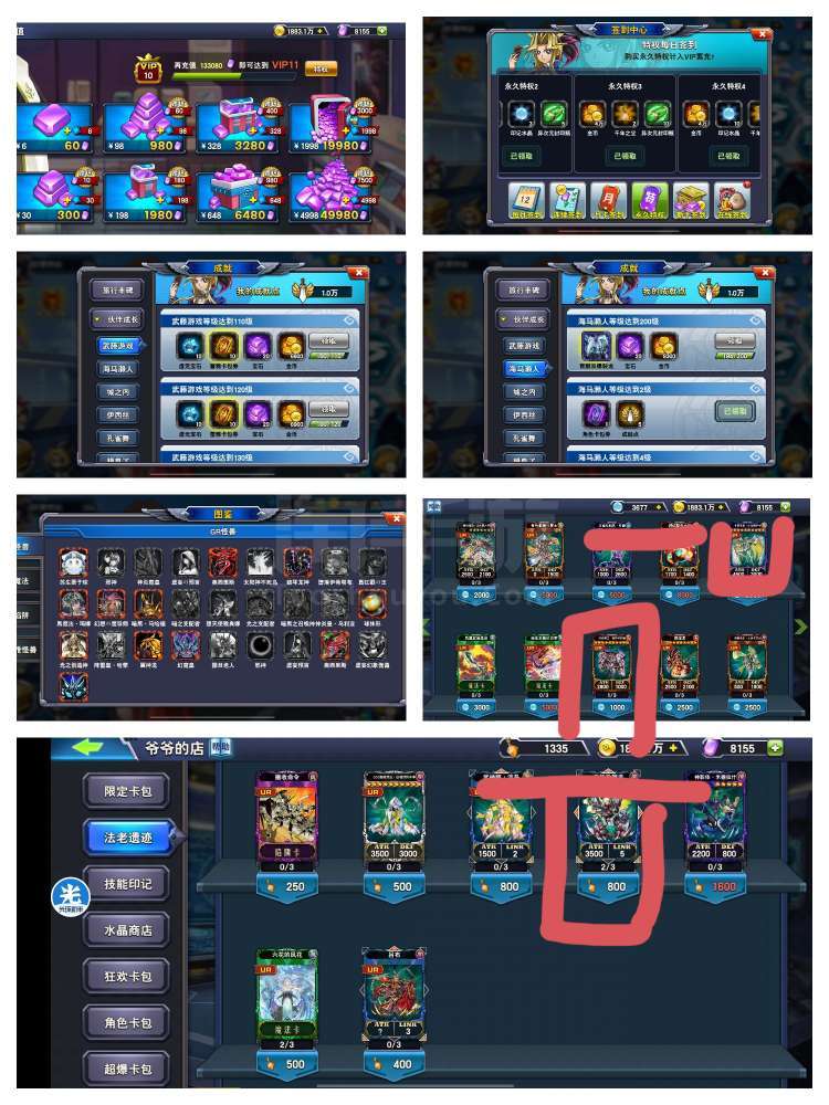 金杯124个,成就1w,金蛋珊瑚曹操黑神冥神2前拖,马尔法索菲亚2古石人2一时3鲁肃,古无限炎帝虹光