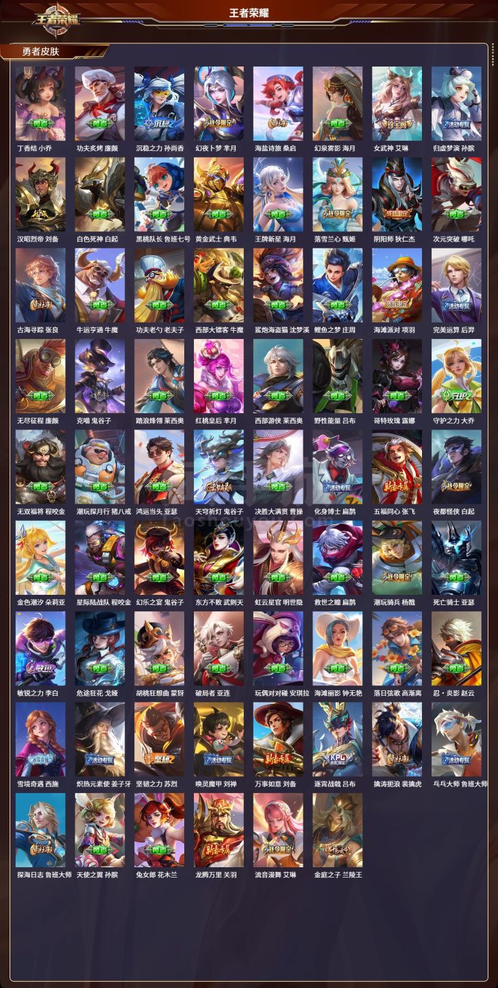 安卓QQ/至尊星耀/452皮肤/126英雄/5典藏/0珍品无双/5无双/9珍品传说/95传说/158