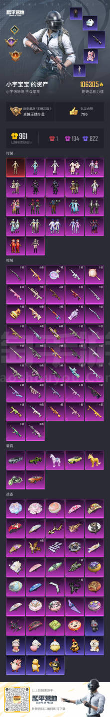 hs47079 苹果手Q-6王牌印记-21粉装-42特效枪-7载具-106305热力值-156套装-